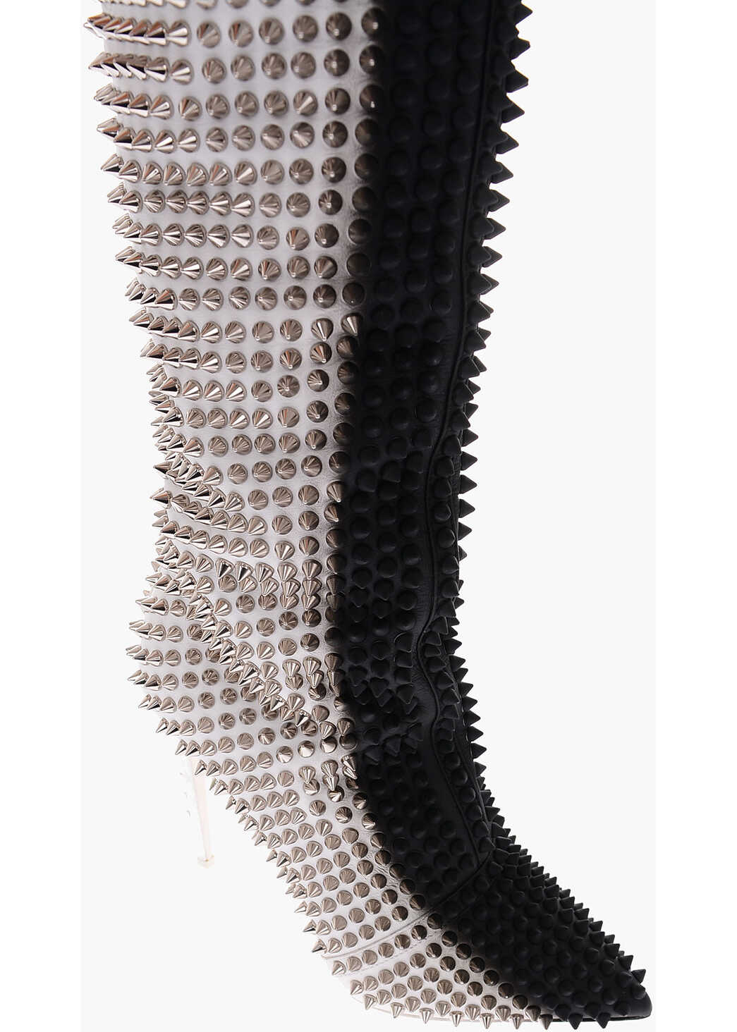Leg Width: 18cm - Heel: 12cm Lace-up Studs Zip Leather sole Narrow toeline Stiletto heels Black & White Made in Italy Spring-Summer Materials: 100%CALF LEATHER + LEATHER SOLE Product code: P367364