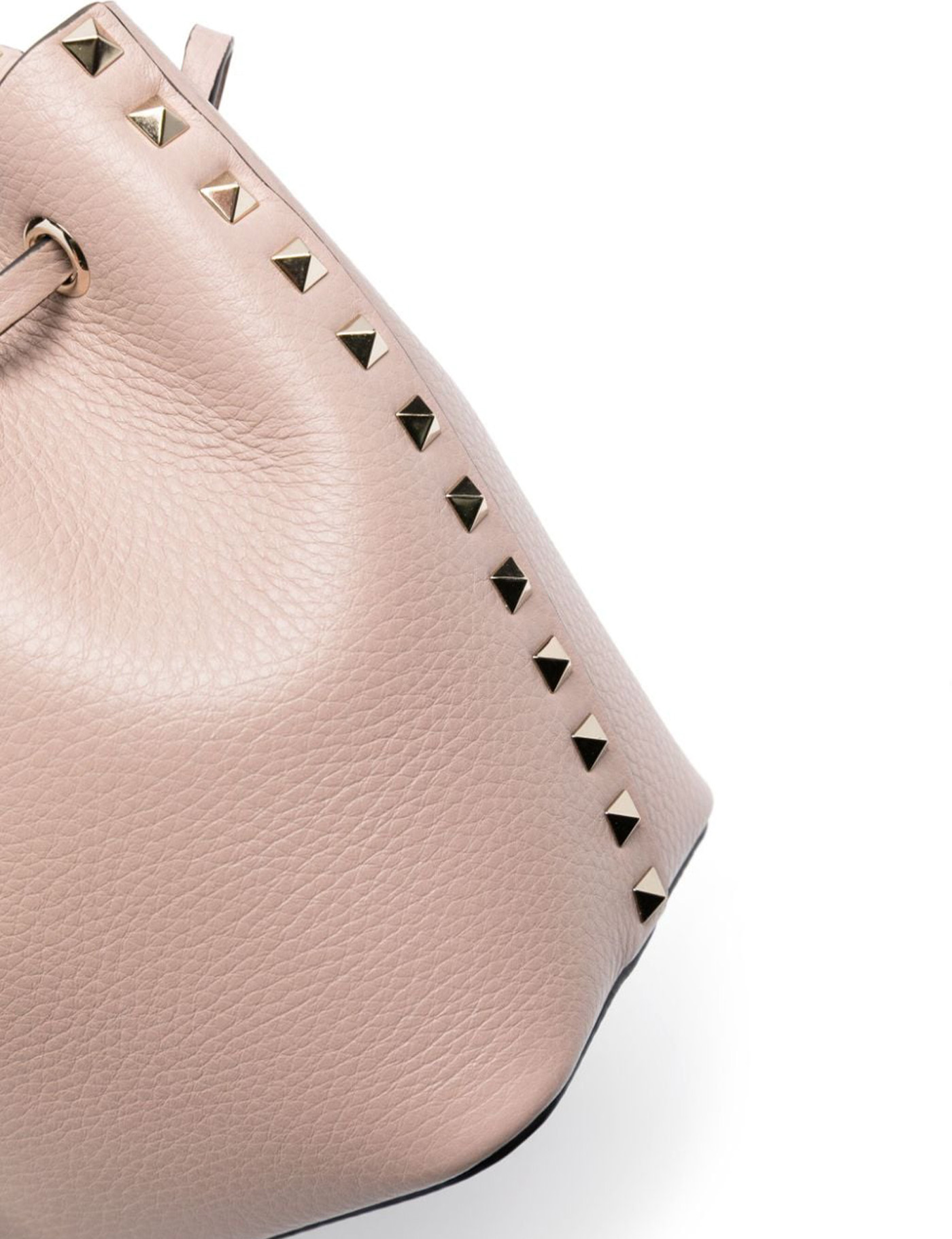 Light pink leather Rockstud bucket bag Width: 16 cm Height: 20 cm Depth: 11 cm Handle height: 13 cm Max shoulder strap length: 56 cm