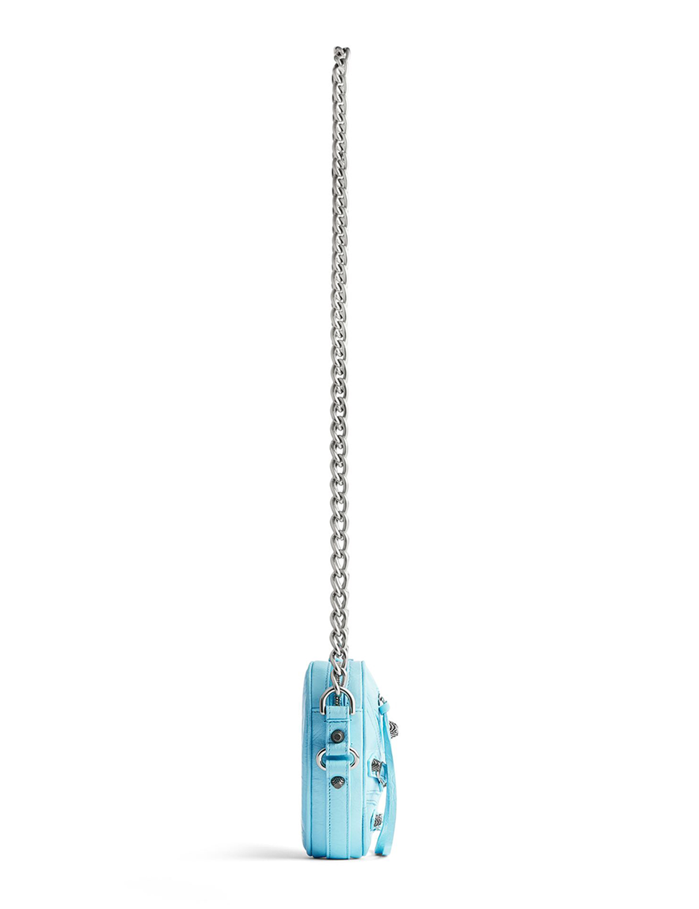 Light blue leather mini Le Cagole Heart crossbody bag Width: 13 cm Height: 13 cm Depth: 4 cm Shoulder strap length: 44 cm