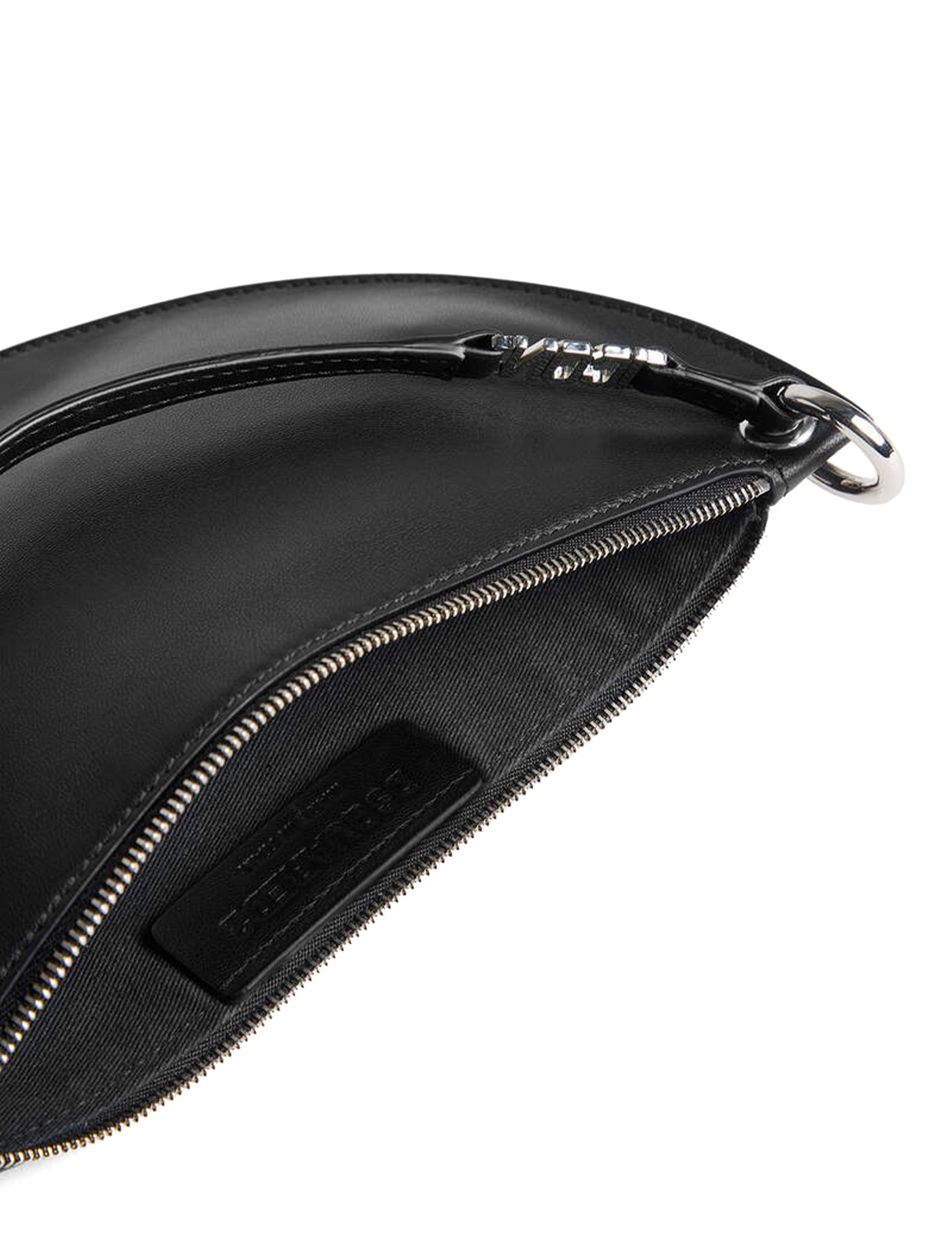 Black leather silver-tone hardware logo plaque single top handle top zip fastening main compartment