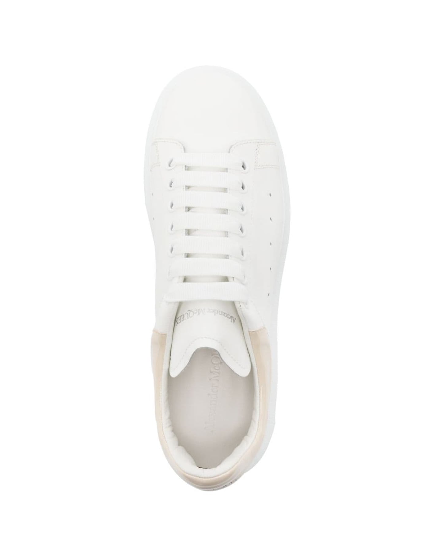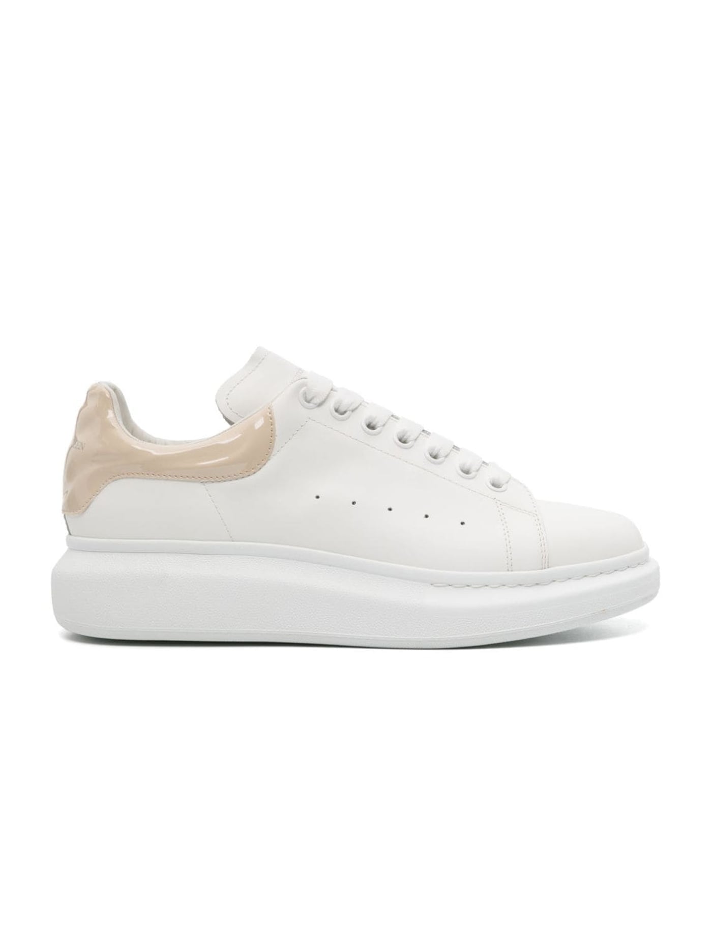 White leather sneakers with grey leather heel