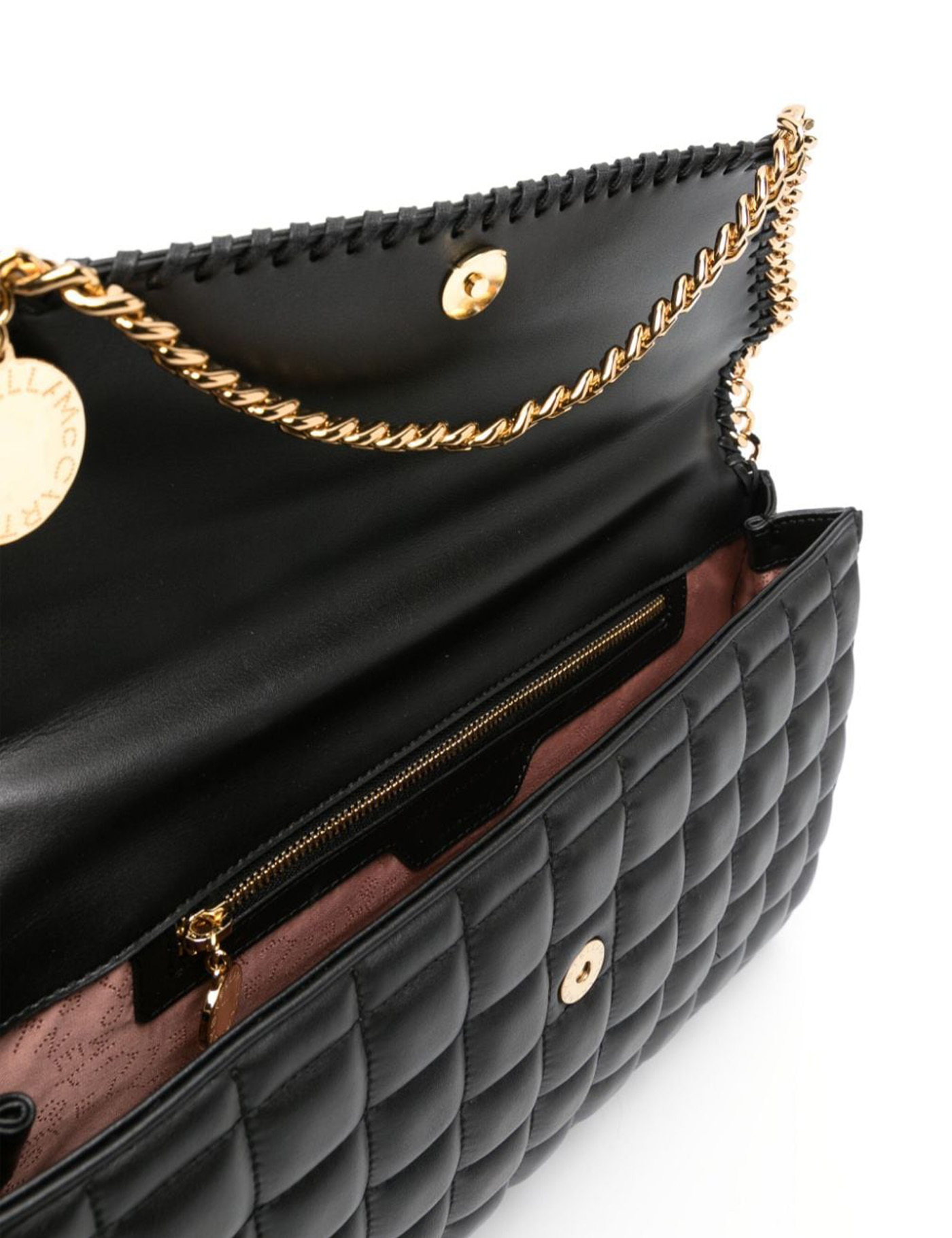 - 'Falabella' quilted shoulder bag - Black - Quilted - Chain shoulder strap - Logo pendant - Flap with magnetic closure - Internal zip pocket