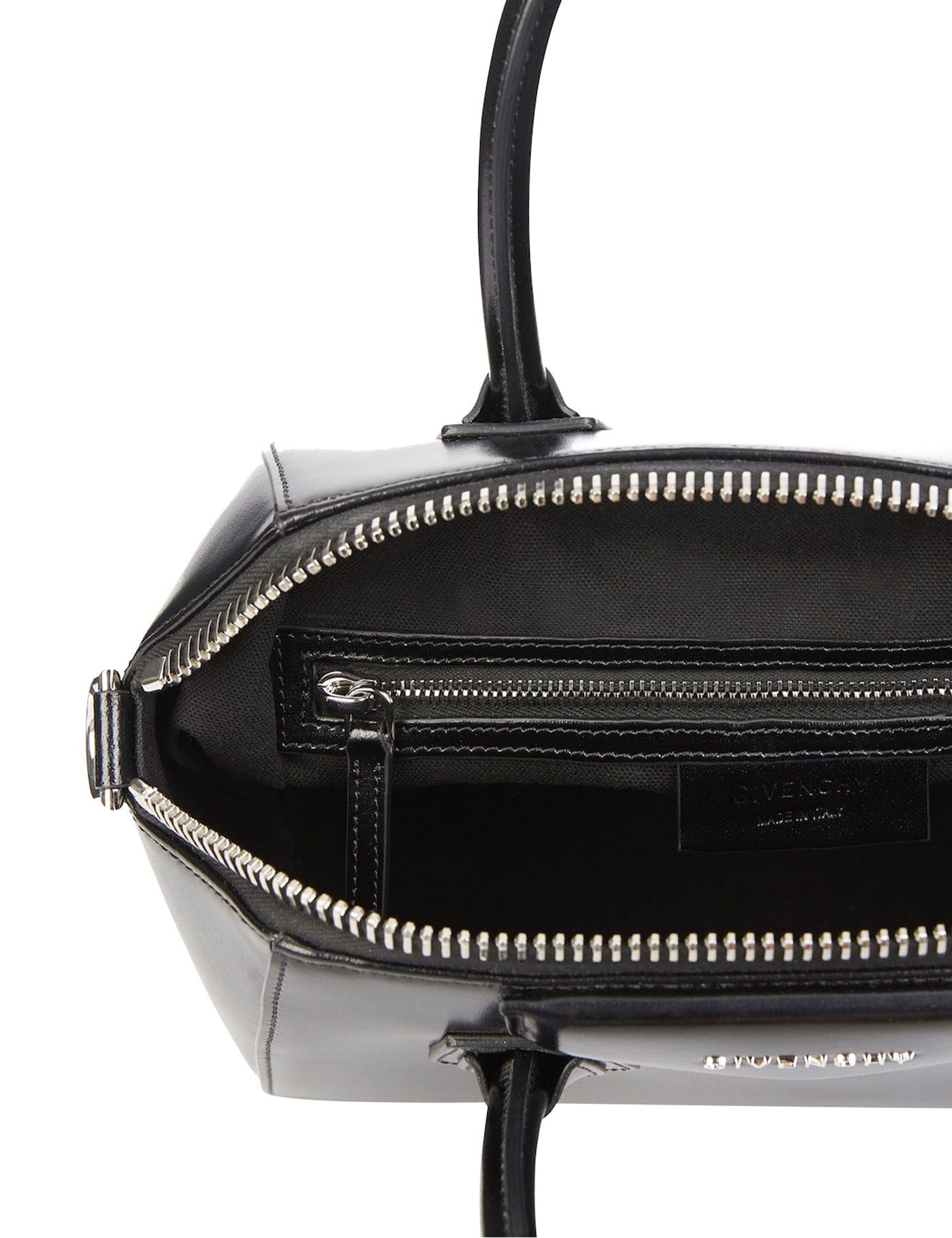 - Material: 100% calfskin leather - Color: black - Cotton lining - Other details: Givenchy lettering on front - Adjustable and detachable leather shoulder strap - Shoulder strap length: 75 cm - Zip closure - Made in Italy - Dust bag - Item number: BB50TPB1R0001 - Size: 25 x 28 x 15 cm