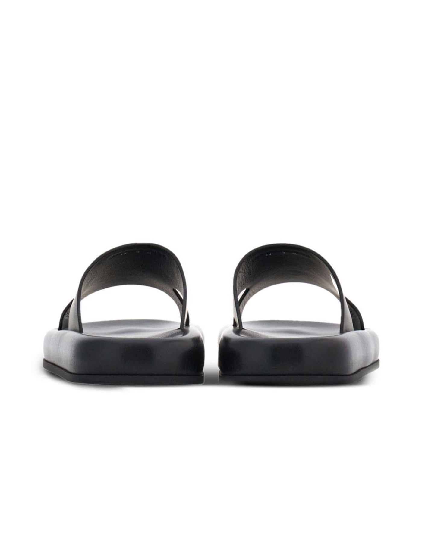 Black calf leather cut-out detailing round open toe branded leather insole flat rubber sole
