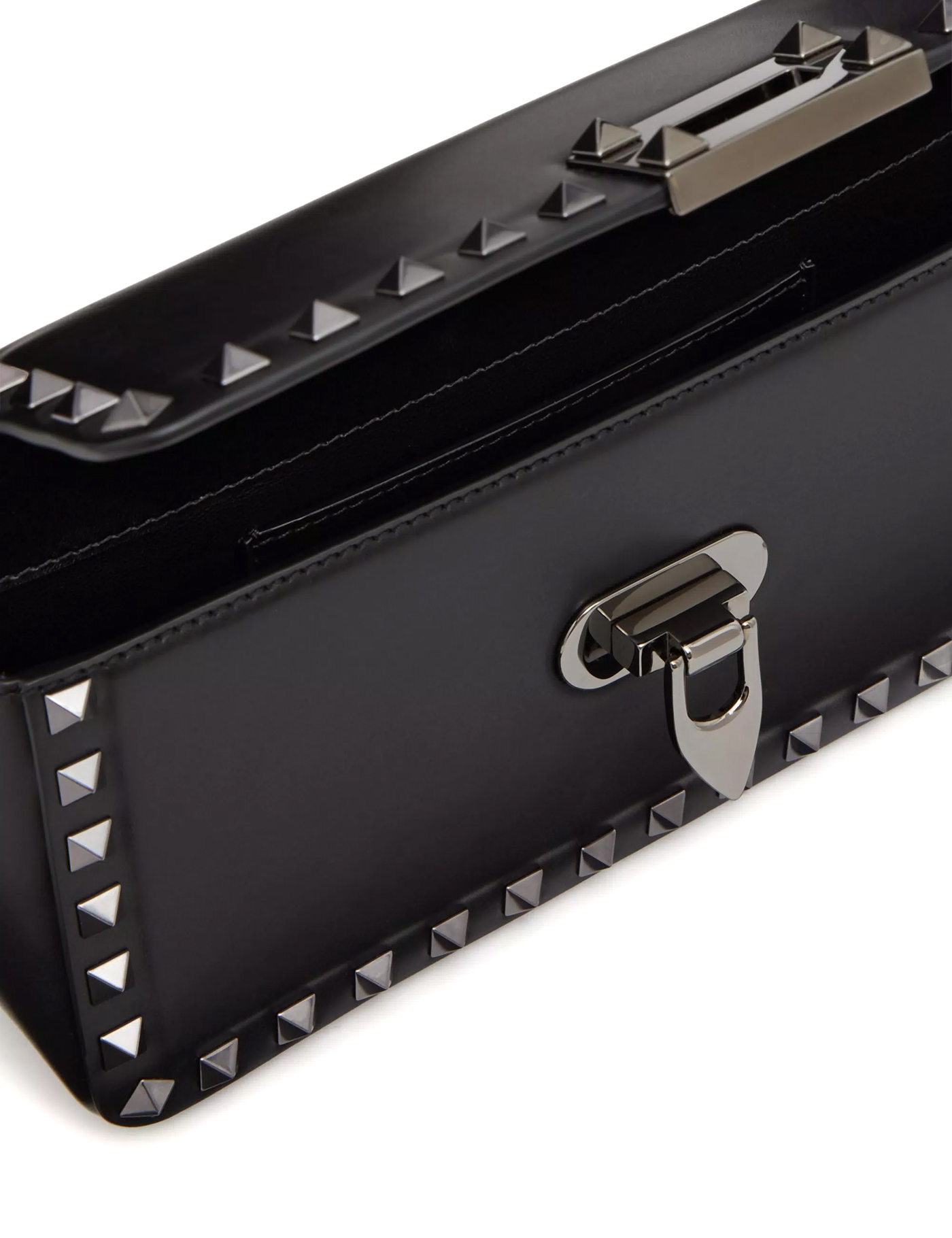 Black leather Rockstud shoulder bag Width: 23 cm Height: 12 cm Depth: 5 cm Min handle height: 30 cm Max handle height: 55 cm