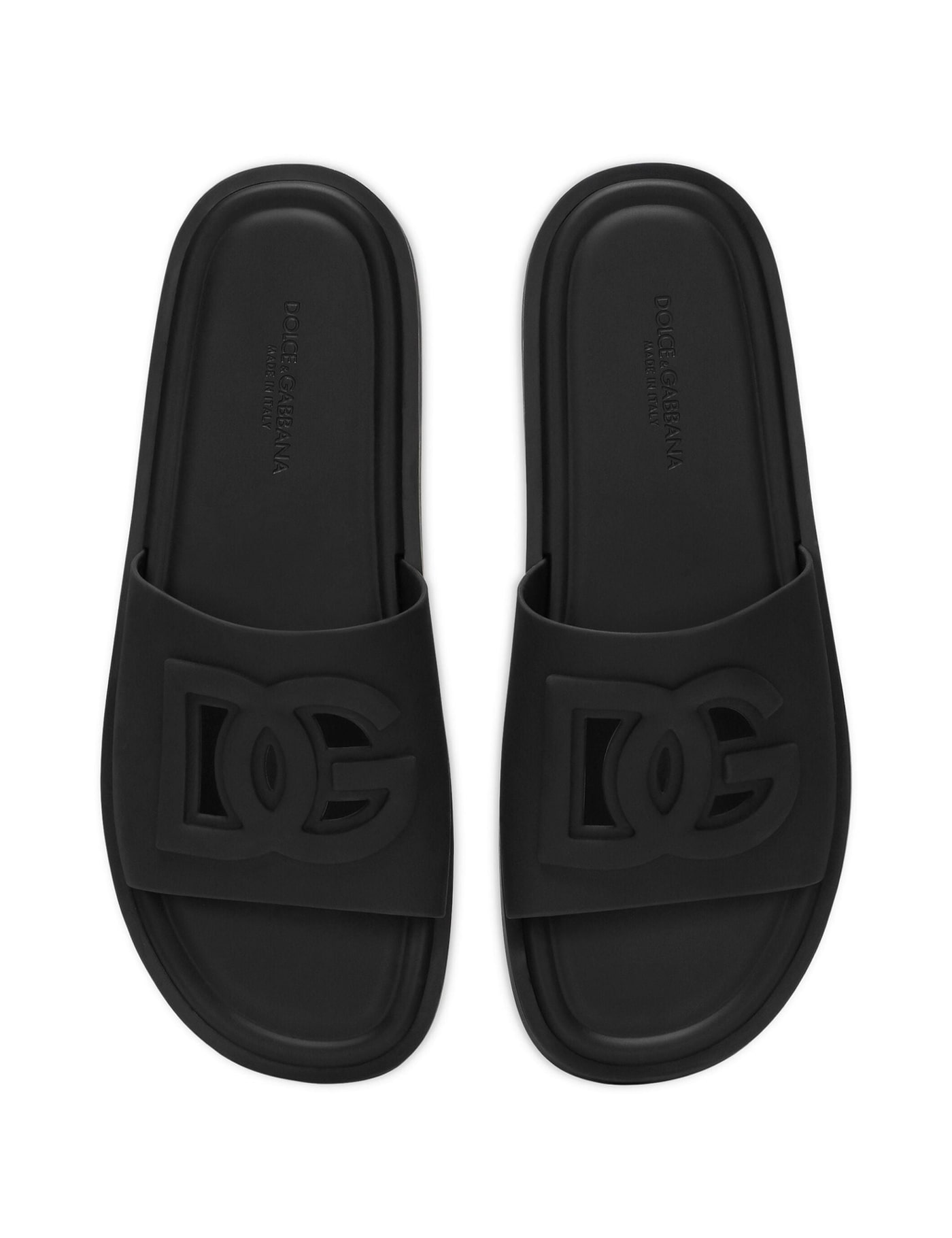 black embossed logo to the front open toe slip-on style flat rubber sole