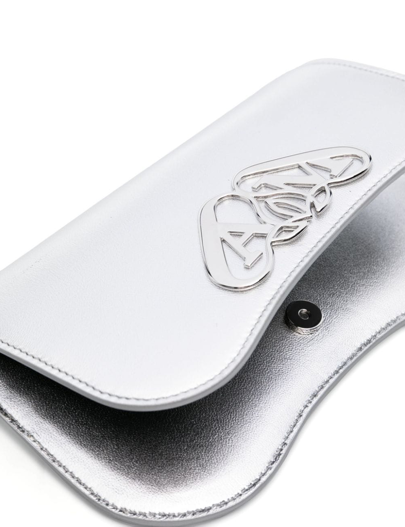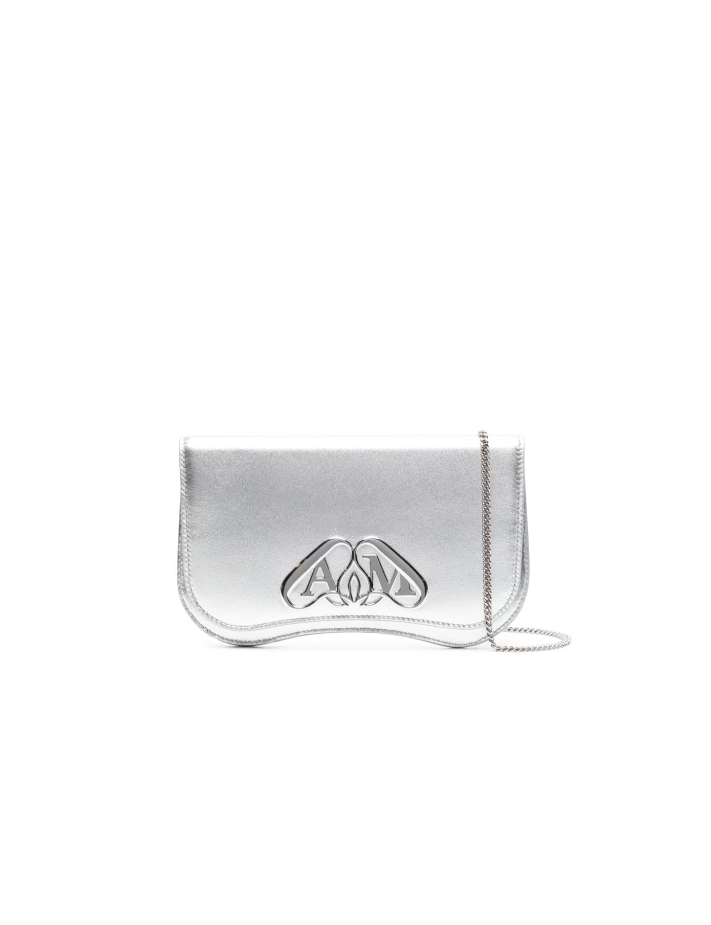 silver-tone calf leather metallic effect signature Seal logo silver-tone logo plaque and hardware debossed logo to the rear detachable chain-link shoulder strap foldover top with magnetic fastening main compartment internal card slot debossed internal logo slip pocket to the rear
