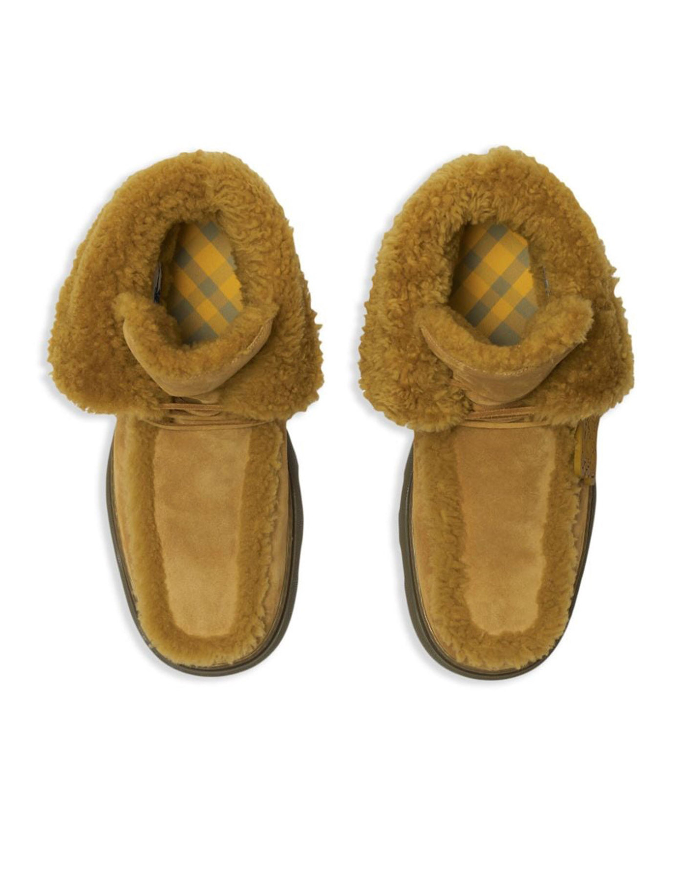 Mustard yellow suede shearling trim equestrian print square toe front lace-up fastening ankle-length ridged rubber sole we've partnered with good on you — an independent agency that rates how brands perform in relation to their impact on the planet, people and animals, with a multi-criteria rating simplified to a five points scale. in order to be awarded our conscious label, larger brands need to score a minimum of four out of five ('good'), while smaller brands must score at least three out of five ('it's a start'). this item comes from a brand rated three out of five ('it's a start') by good on you at the time it was added on farfetch. please note, this is a brand-level rating and does not guarantee that this product is made with conscious materials. learn more about what makes a product conscious on our conscious criteria page