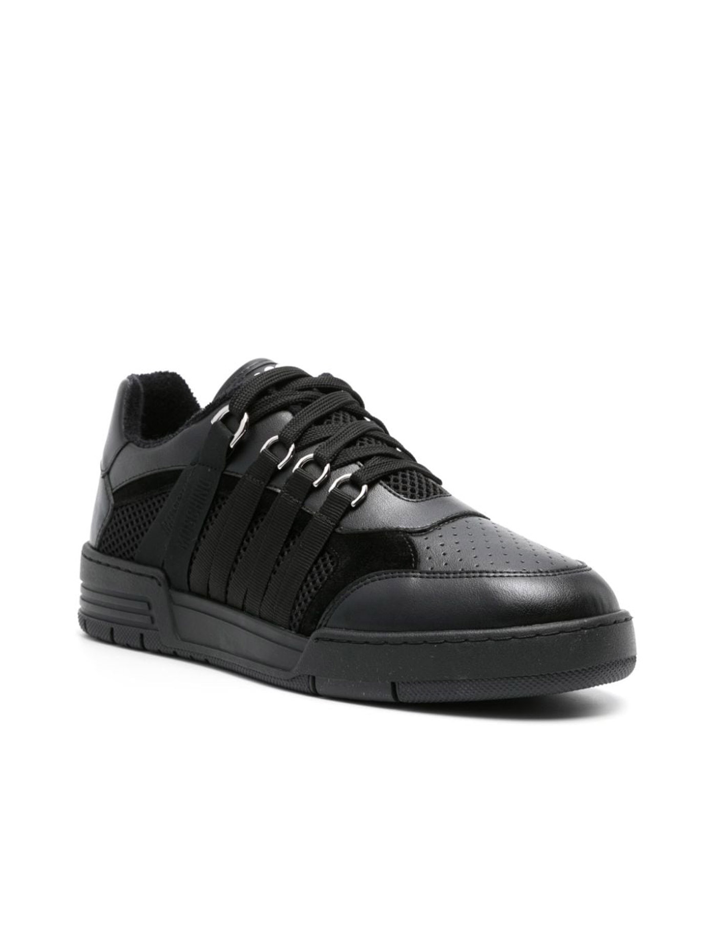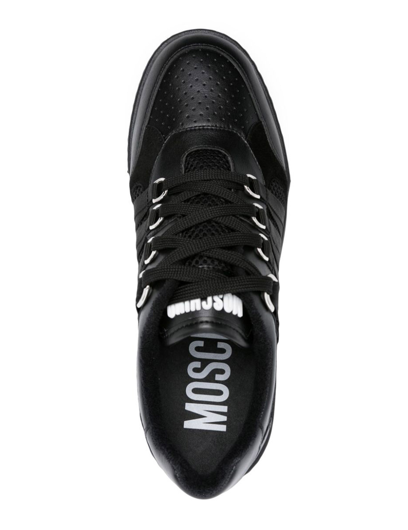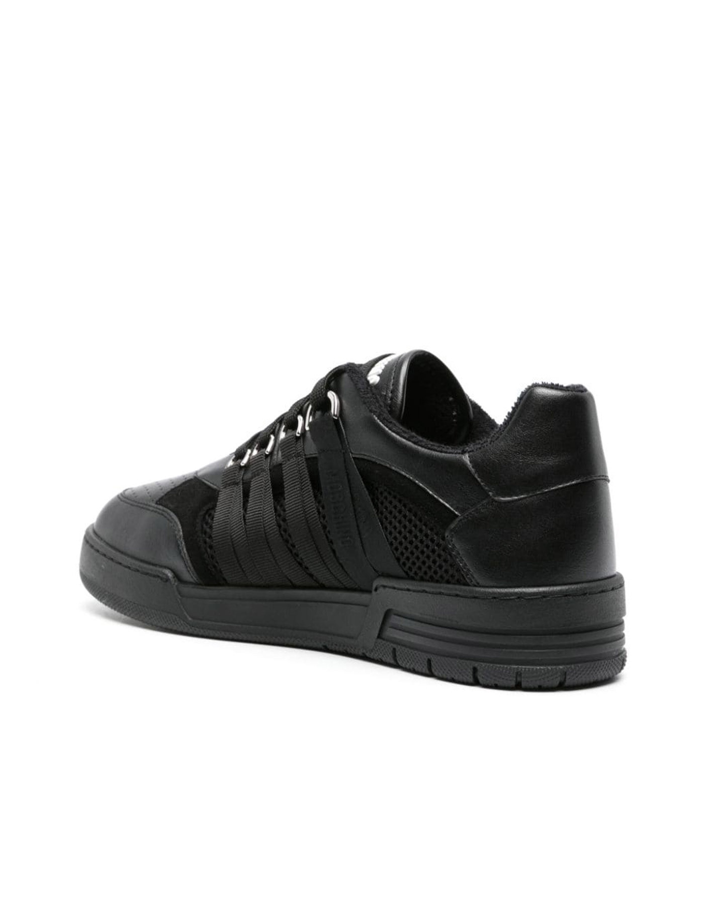 Moschino black Streetball sneakers, round toe, lace closure, fabric and leather upper, rubber sole, Eu size