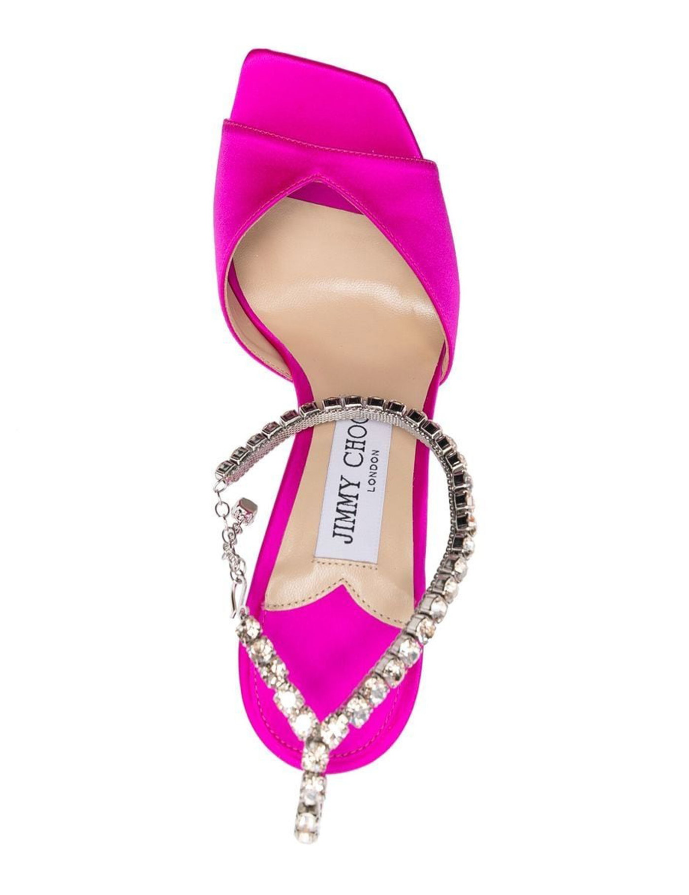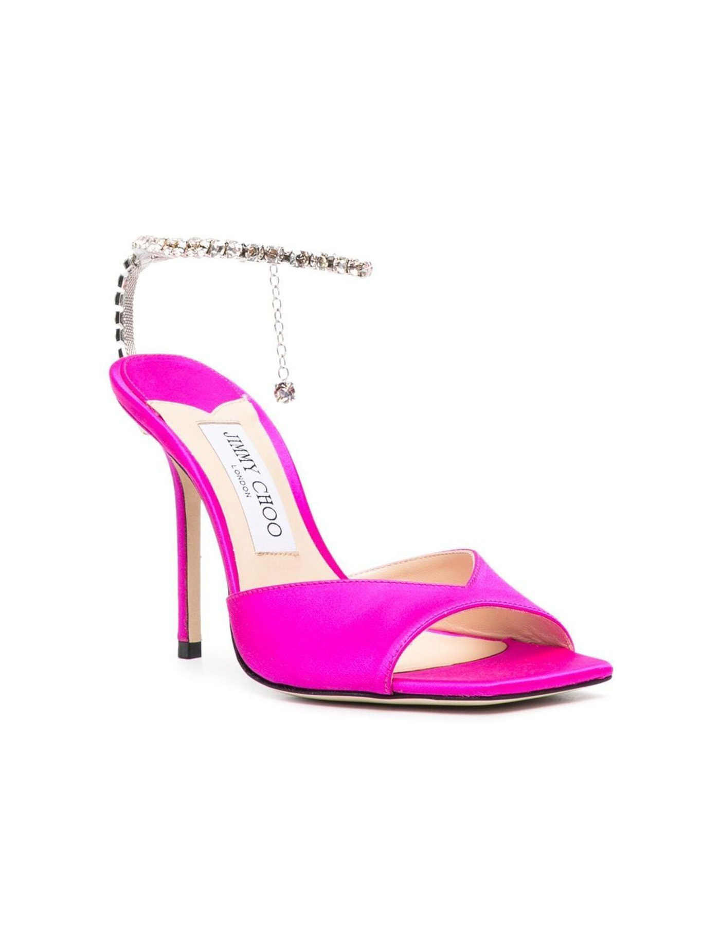 JIMMY CHOO Saeda 100 MM Crystal Embellished Satin Heel sandale cu toc fucsia