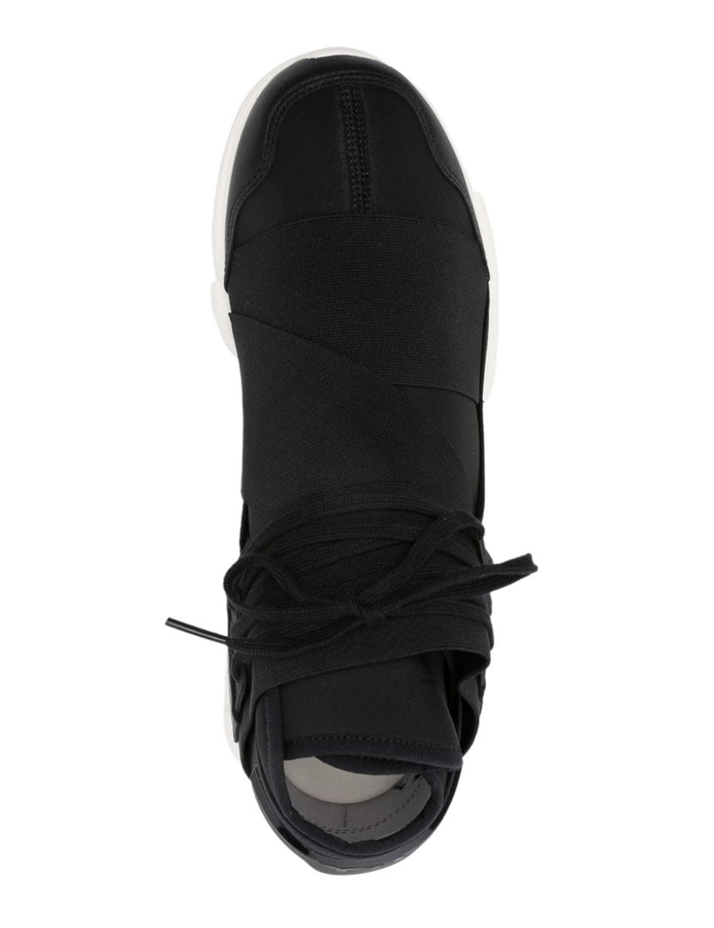Low Qasa sneakers by Yohji Yamamoto's collaboration with Adidas featuring fabric upper with stretch mesh, tone-on-tone leather details and elastic bands. Rear contrasting logo patch, unlined interior, PORON® insole and tubular EVA outsole.