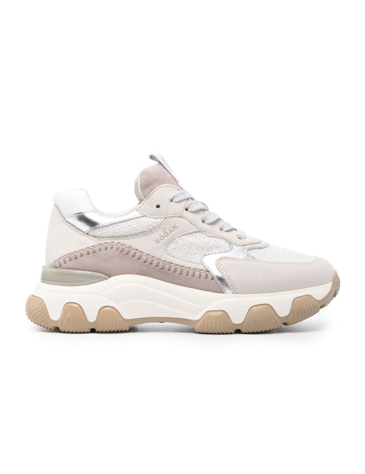 - 'Hyperactive' sneakers - Beige and white - Embossed logo - Side panel design - Round tip - Lace-up closure on the front - Logo patch on the tongue - Branded insole - Thick rubber sole
