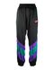 Long pants. Elastic and drawstring waistband. Two side pockets. Logo on front. Block pattern.