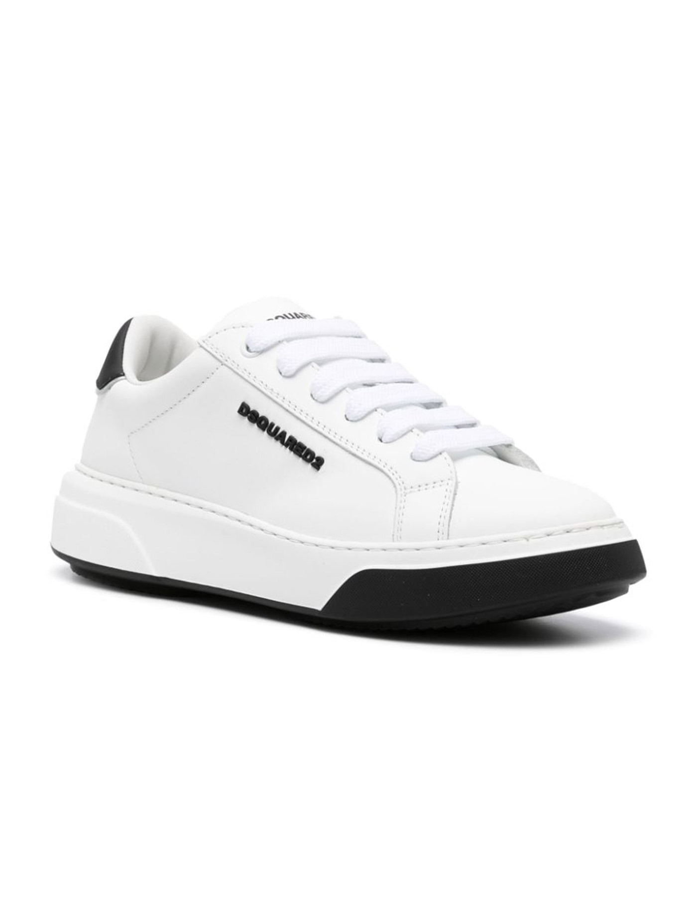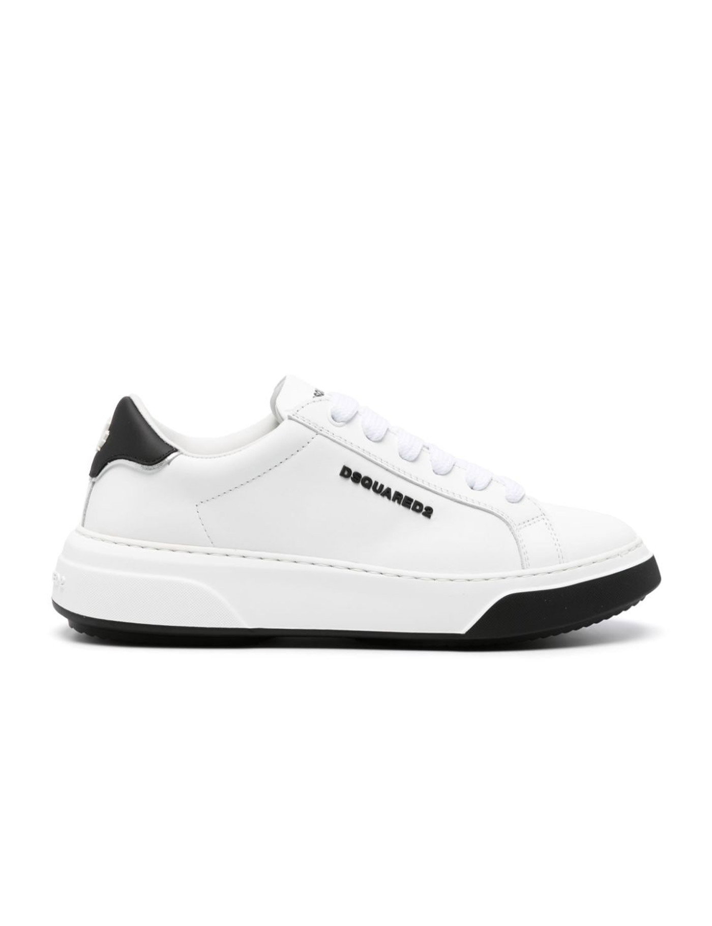 White sneaker. Lace-up closure. Logo on tongue, heel and side.
