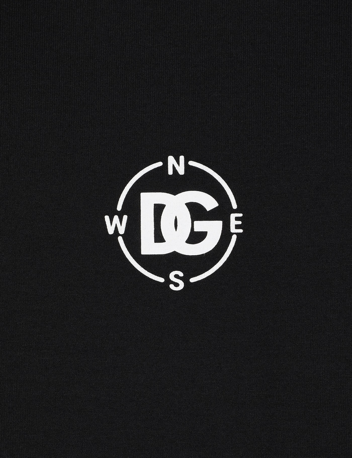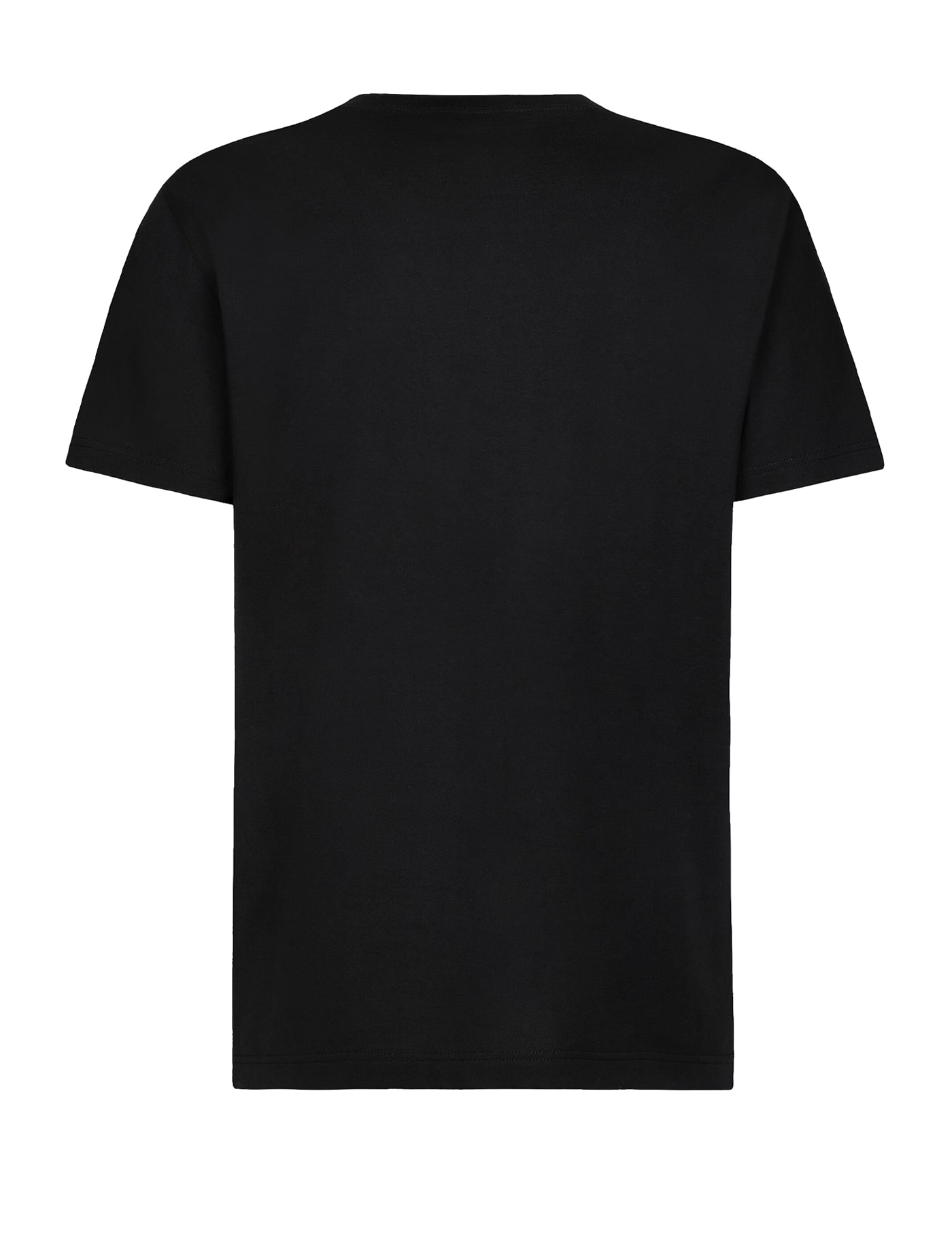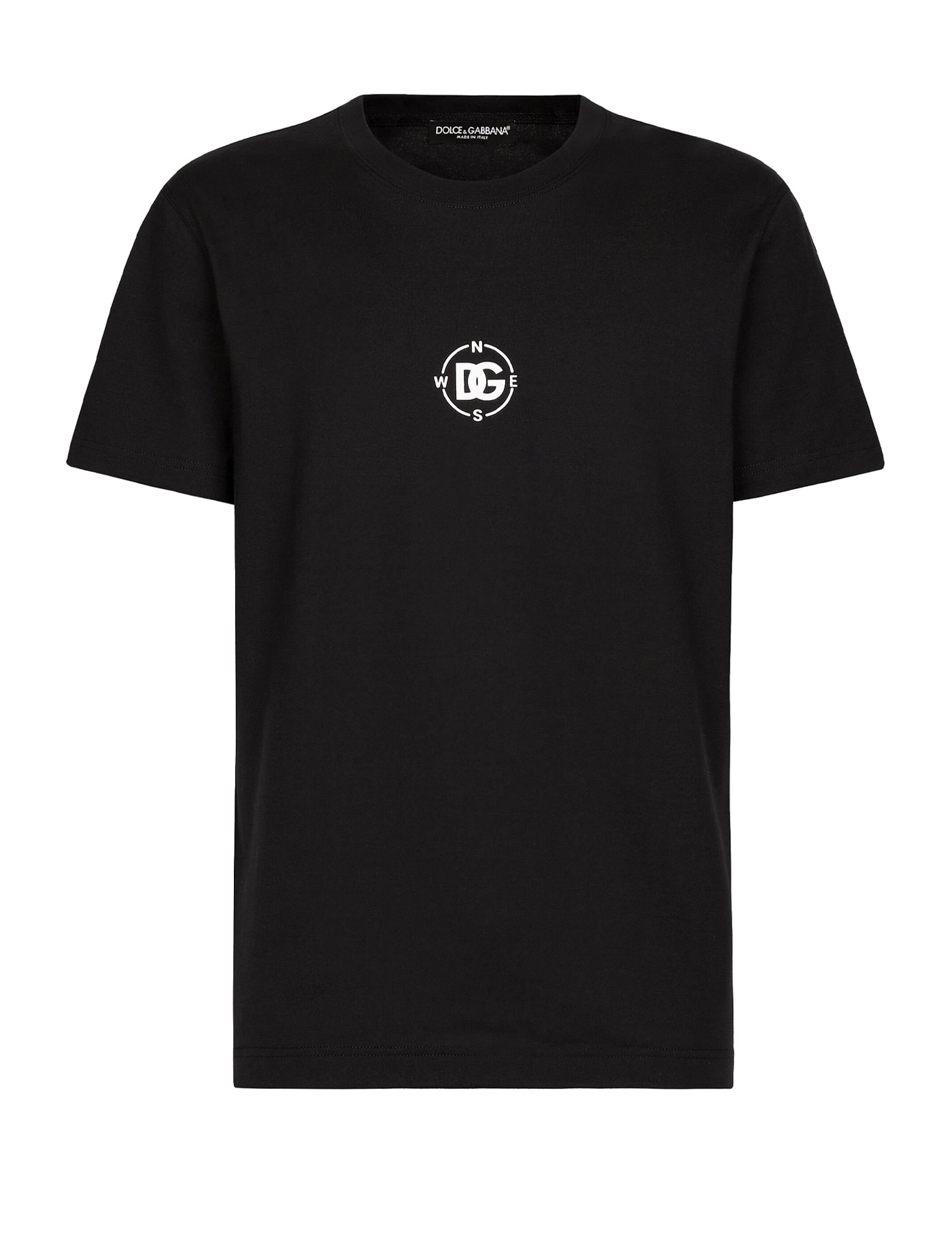 Short-sleeved cotton T-shirt. Smocked collar, sleeves and garment bottom. Classic fit. Logo stick label on neck. Navy print.