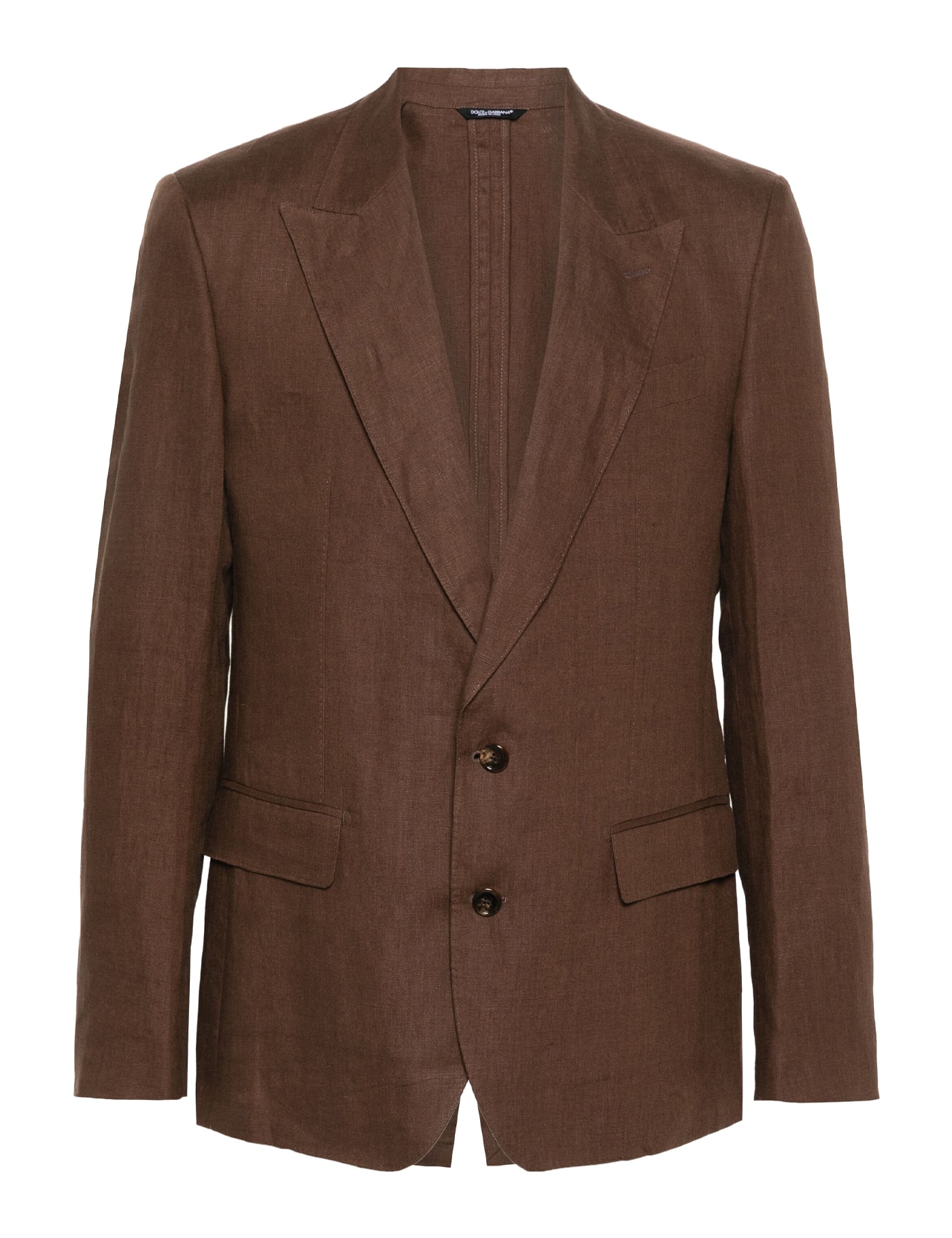 Brown linen blazer from Dolce & Gabbana featuring long sleeves, frontal buttons fastening, round hem, pockets and regular vestibility.