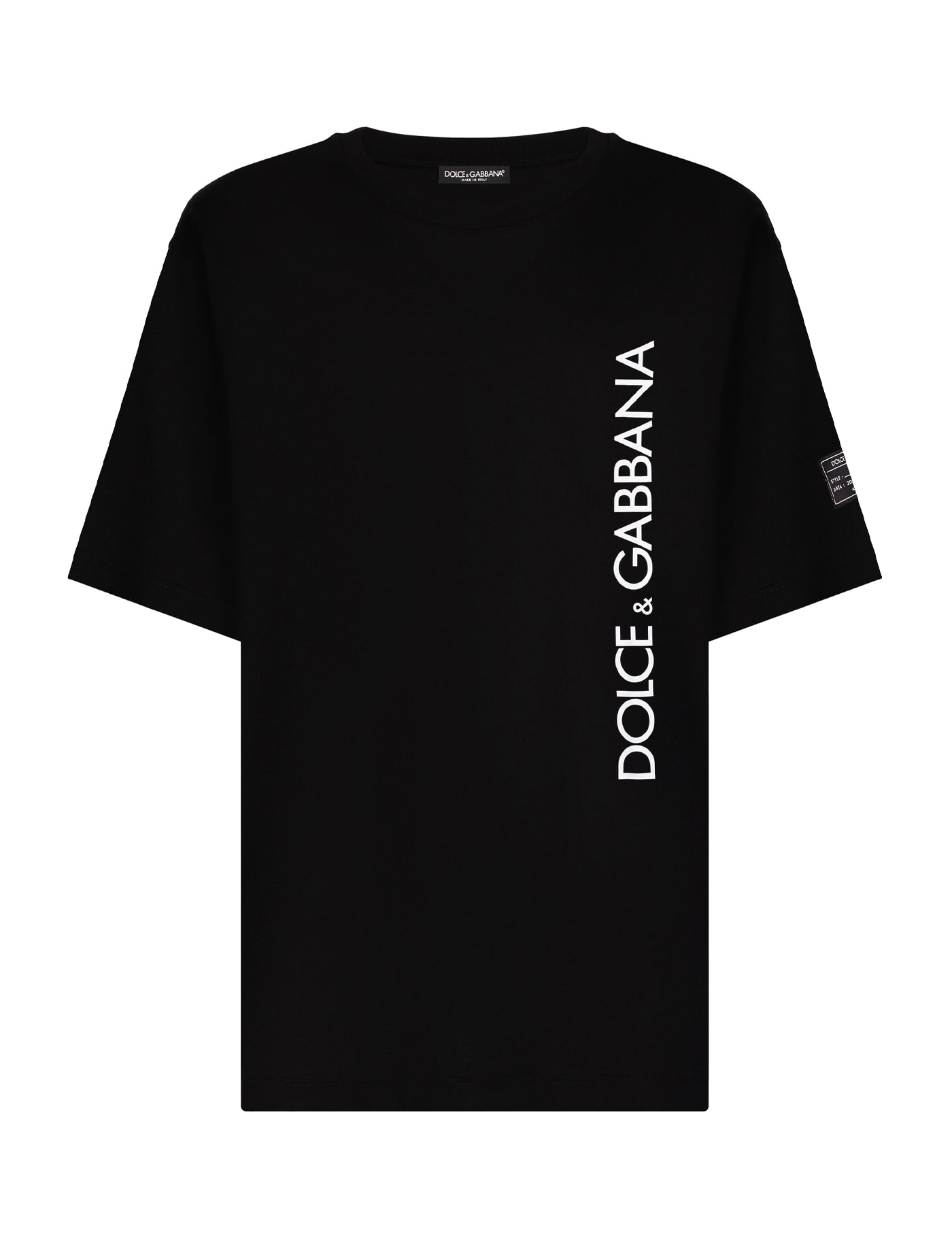 Black cotton logo print to the front logo print at the sleeve round neck short sleeves straight hem