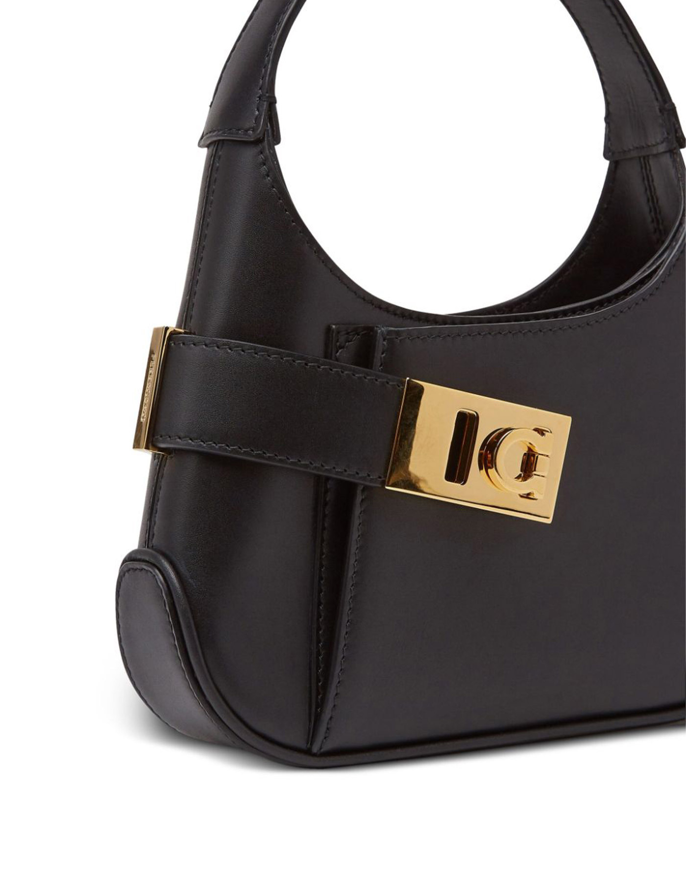 Black leather Hobo mini handbag Width: 20 cm Height: 11,5 cm Depth: 4,5 cm Handle height: 11 cm Min shoulder strap length: 63 cm Max shoulder strap length: 68 cm