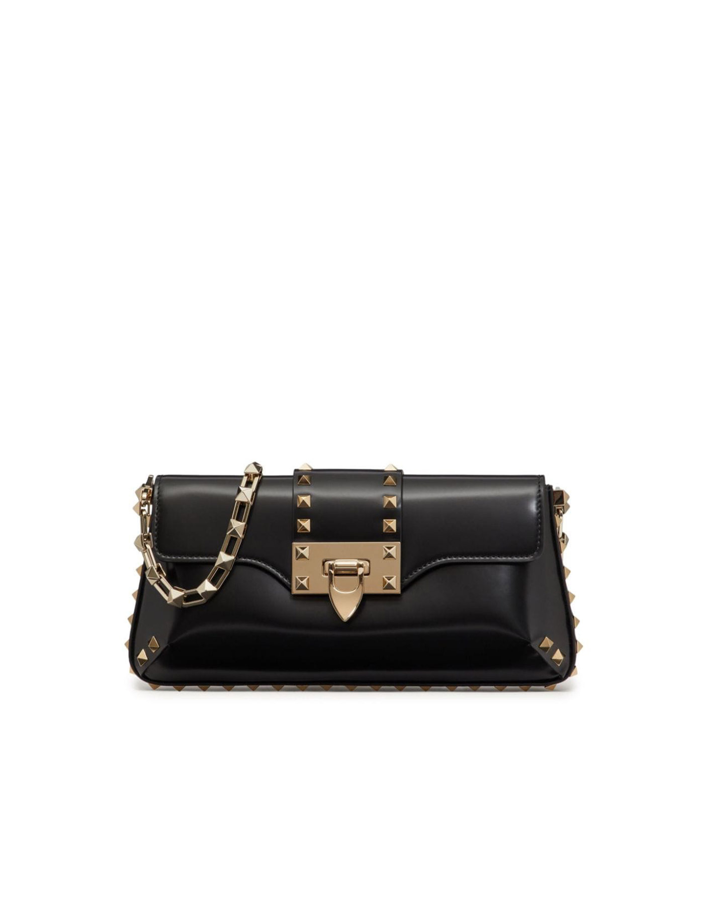 Black leather Rockstud shoulder bag Width: 23 cm Height: 12 cm Depth: 5 cm Min handle height: 30 cm Max handle height: 55 cm
