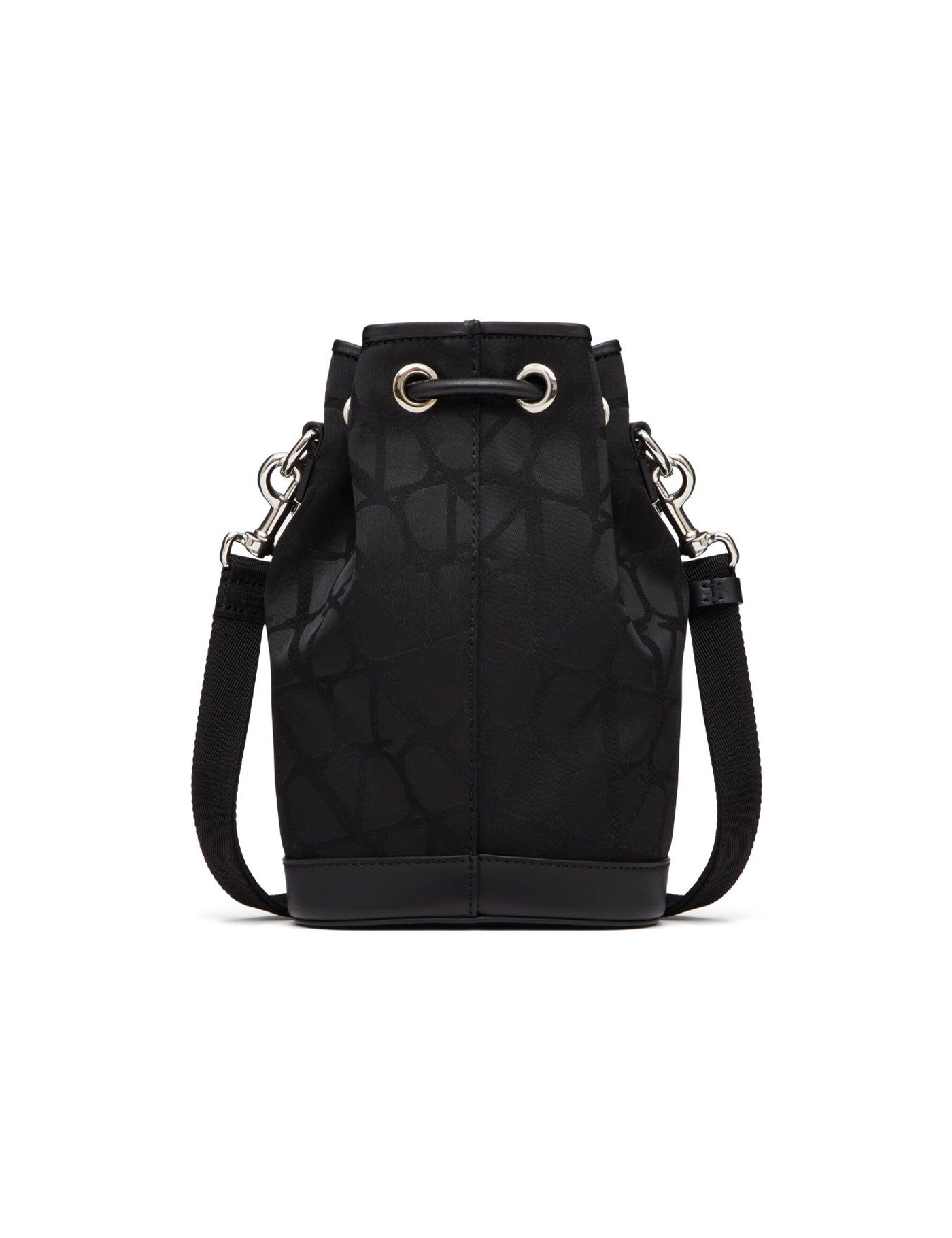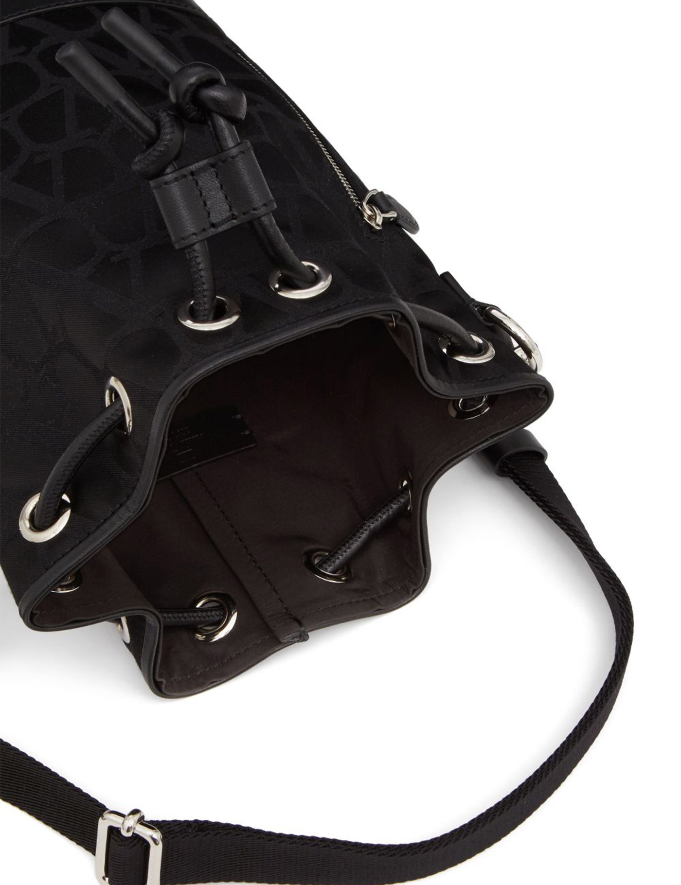 mini Iconographe bucket bag from VALENTINO GARAVANI featuring black, VLogo Signature, drawstring fastening, adjustable detachable shoulder strap, zip-fastening pocket and palladium-plated hardware.