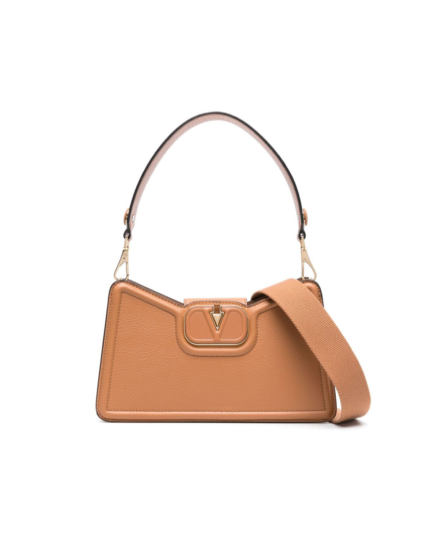 Camel leather VLogo shoulder bag Width: 24 cm Height: 14,5 cm Depth: 8 cm Handle height: 22 cm Min shoulder strap length: 44 cm Max shoulder strap length: 68 cm