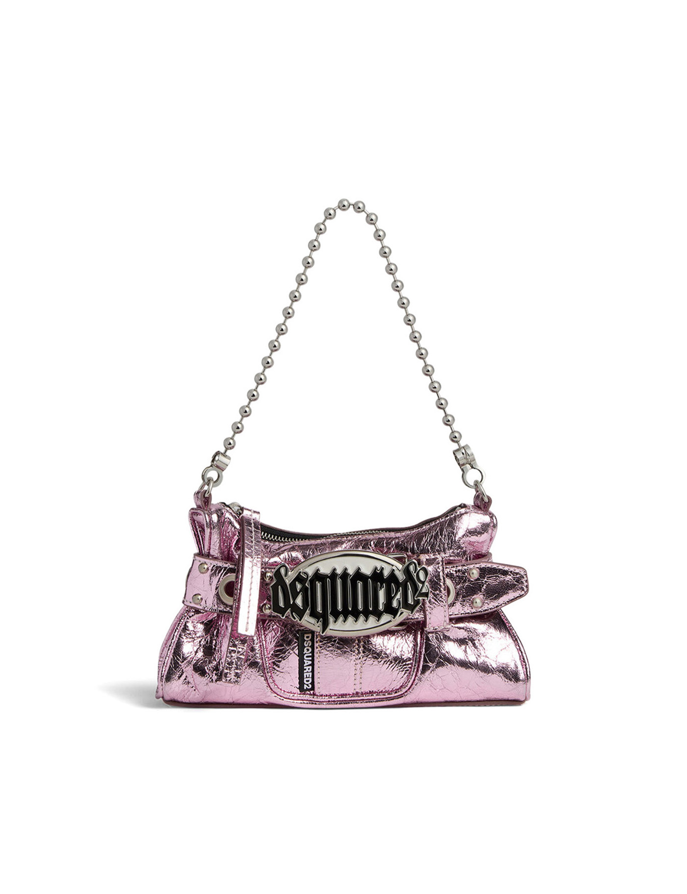 Gothic Dsquared2' laminated leather clutch with logo front buckle, metal shoulder strap, adjustable leather shoulder strap and zip closure