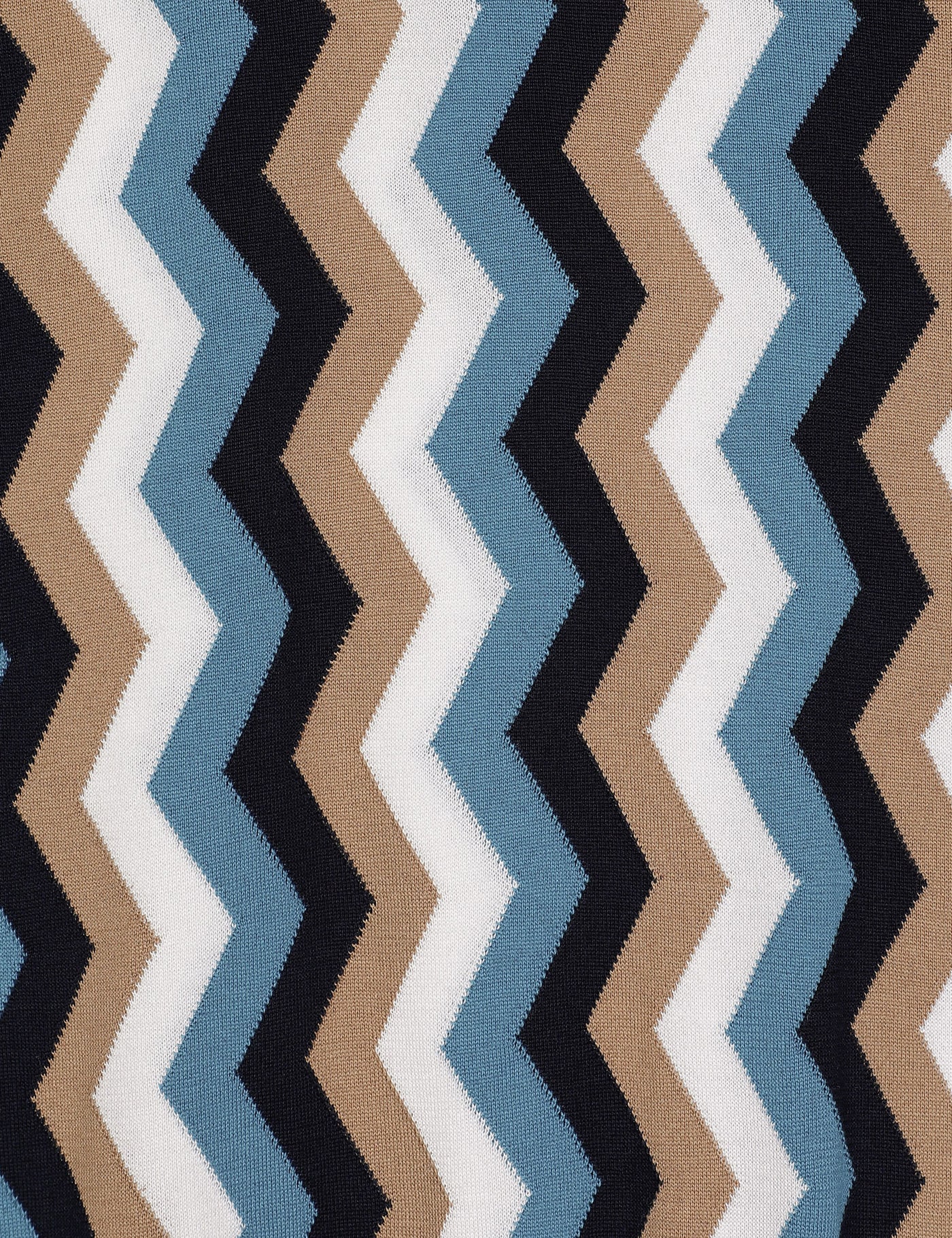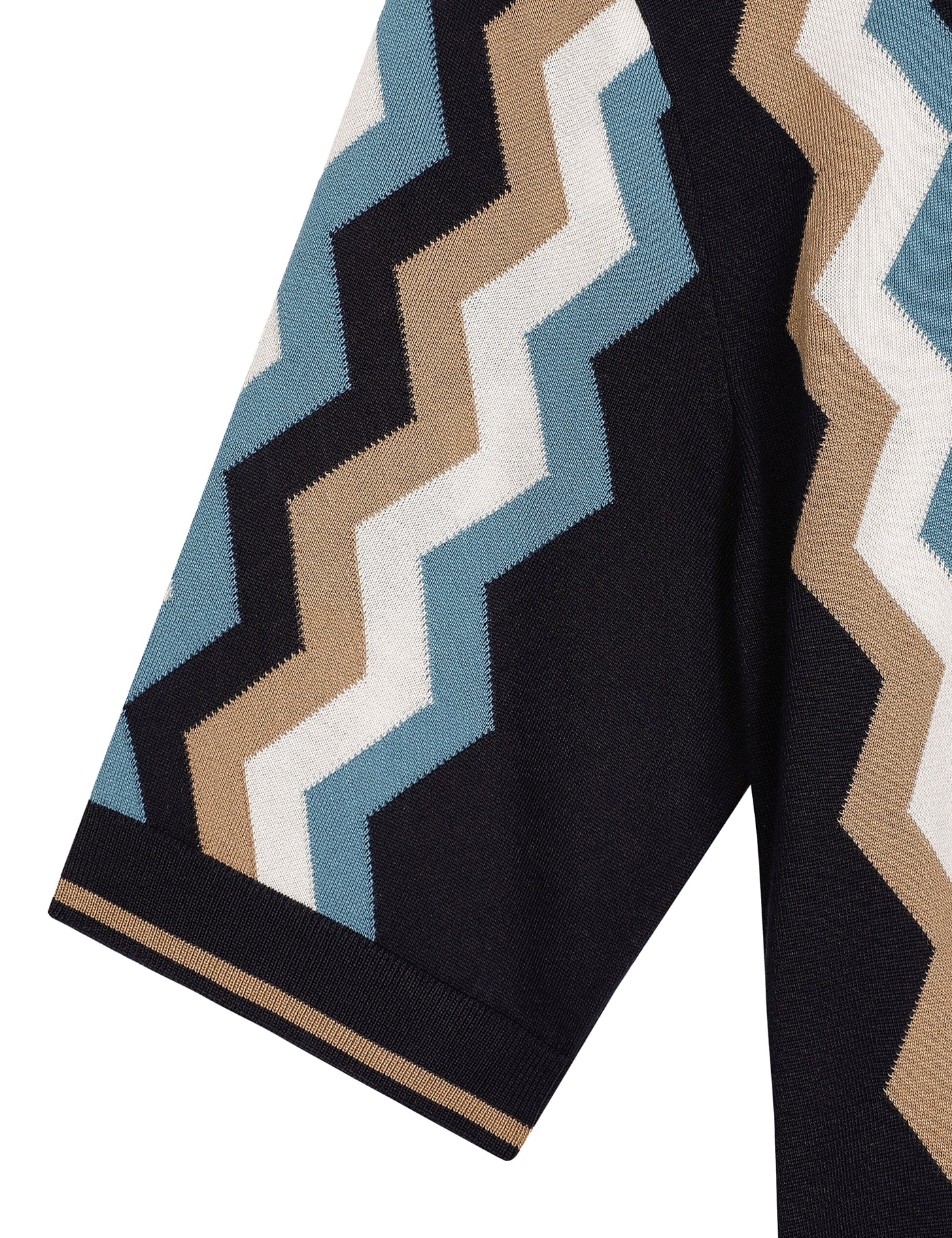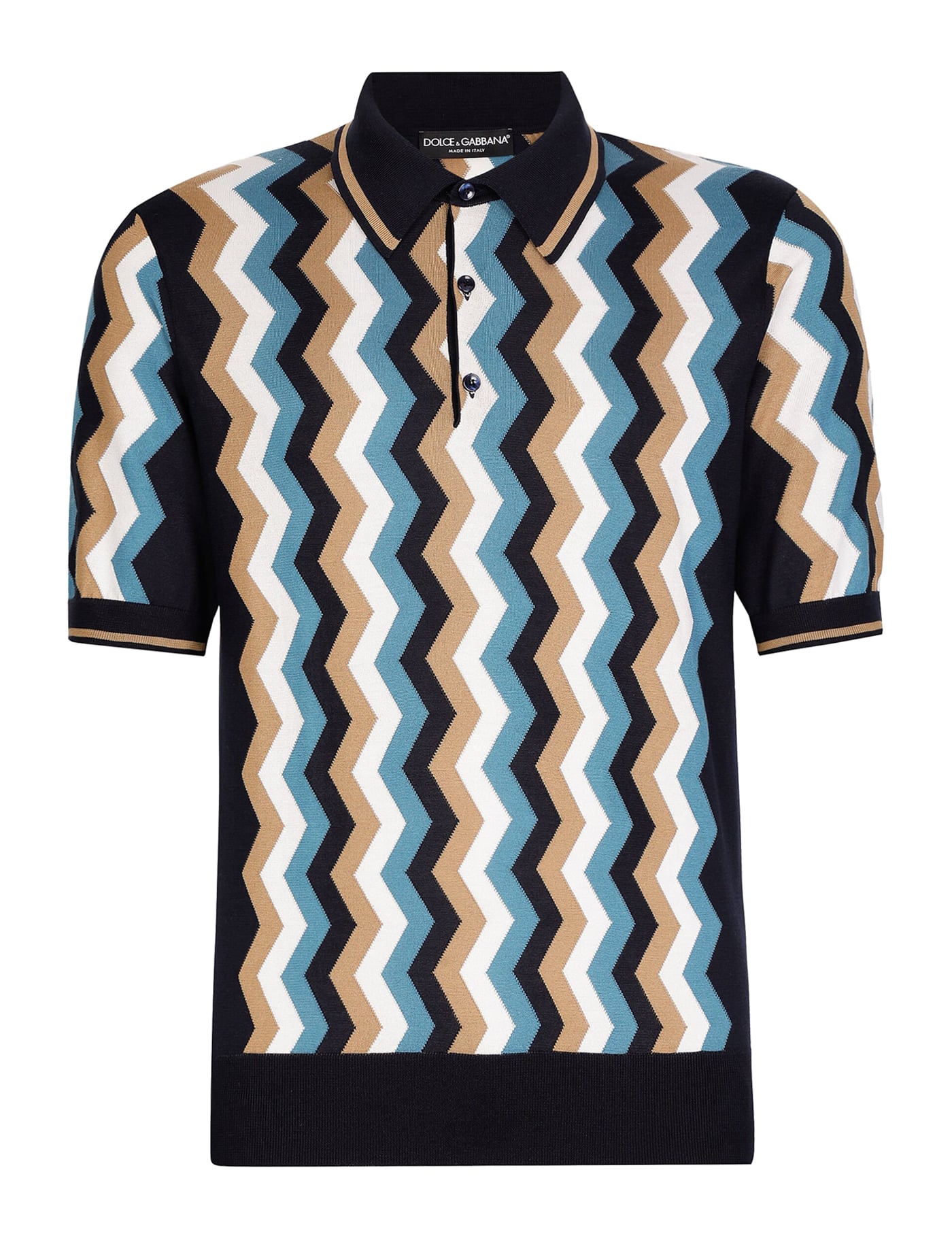 Multicolour silk polo shirt from Dolce & Gabbana featurng polo collar, short sleeves, all-over zig zag print, logo plaque at the chest and straight hem.