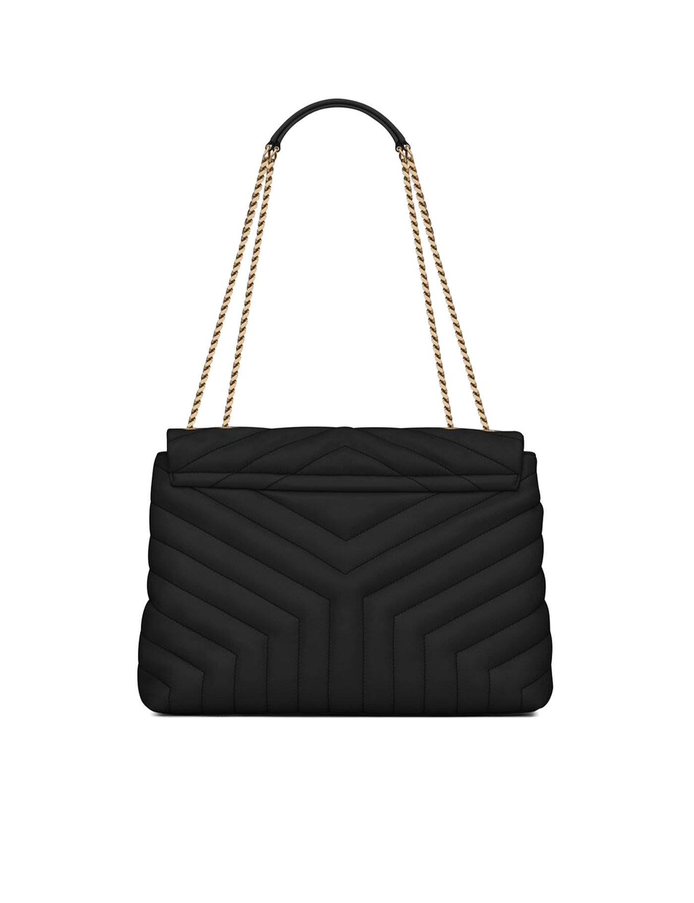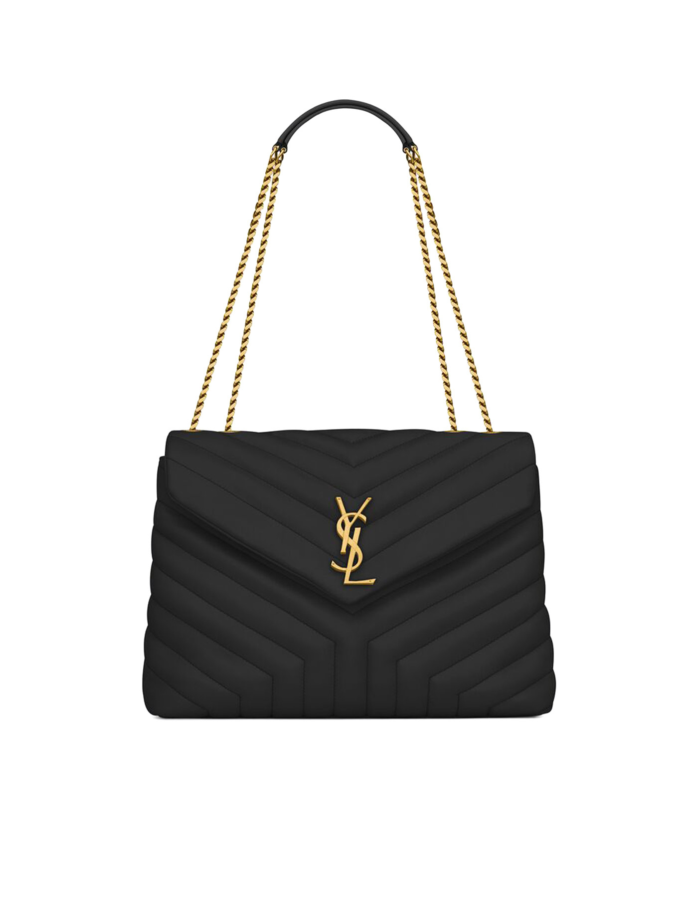 Leather bag by Saint Laurent. Magnetic snap fastening. Logo patch to the front. Size: 32 x 22 x 12 cm