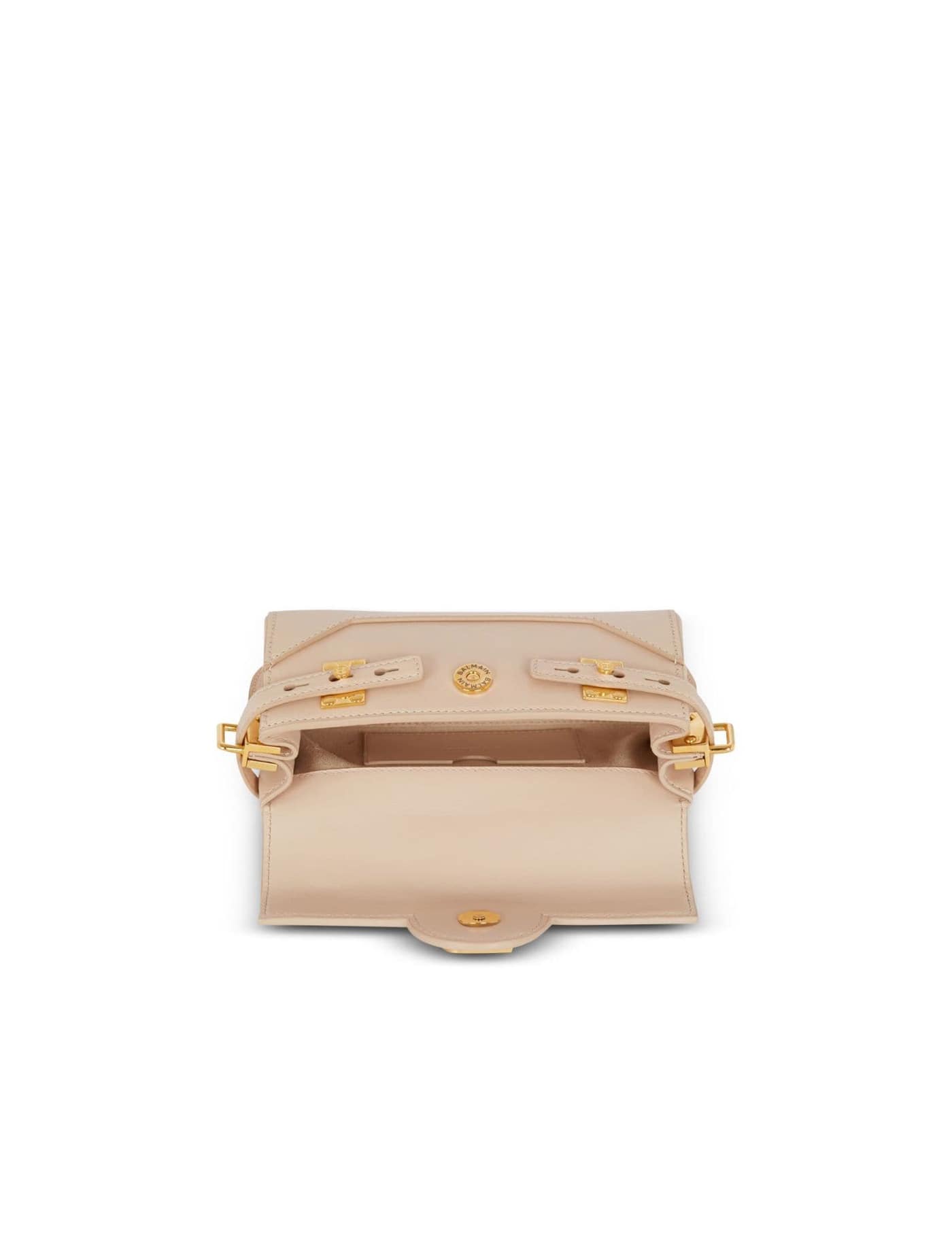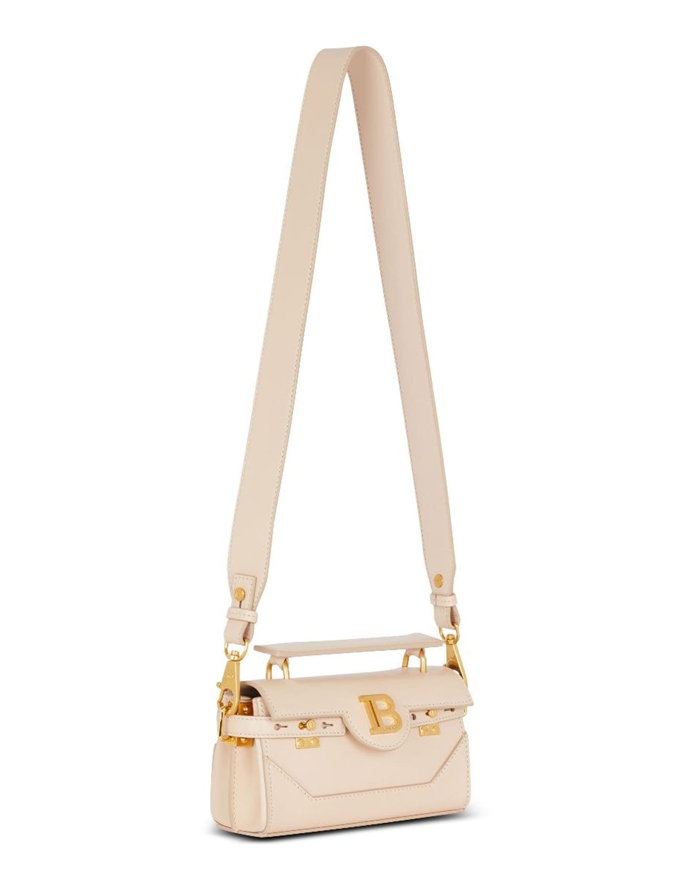 Handle and detachable shoulder strap with Balmain engraved snap hooks