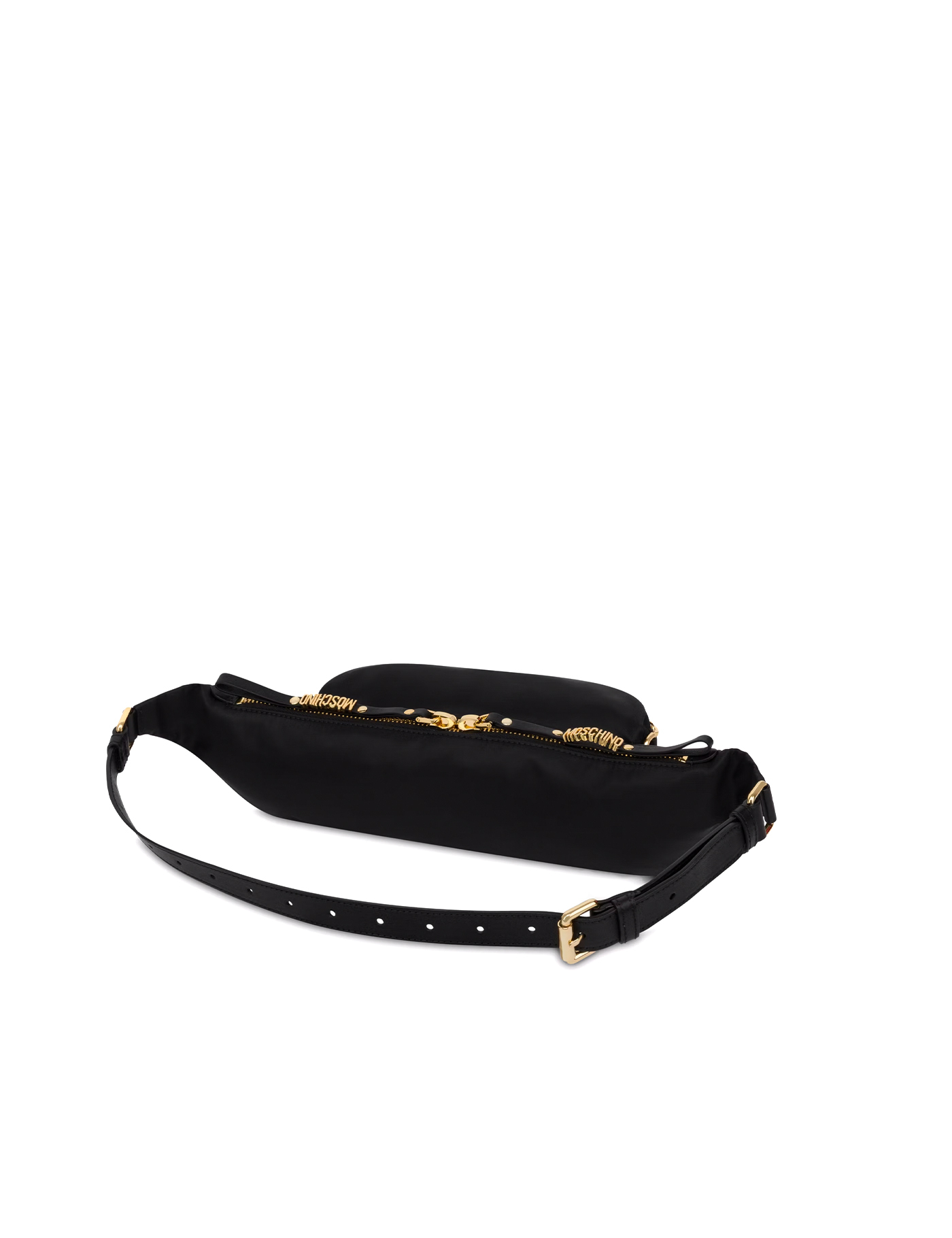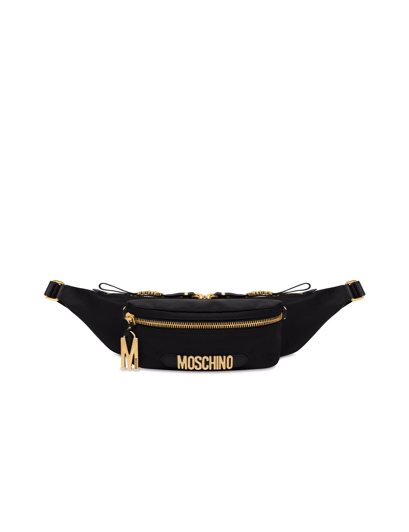 Nylon fanny pack with all-over logo, zip closure, adjustable belt
