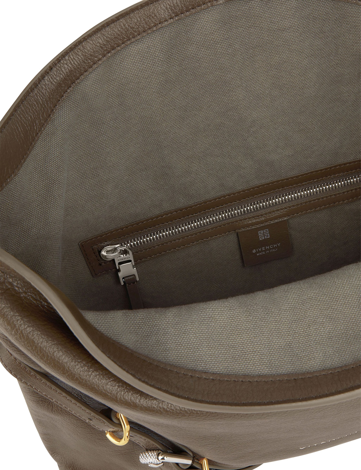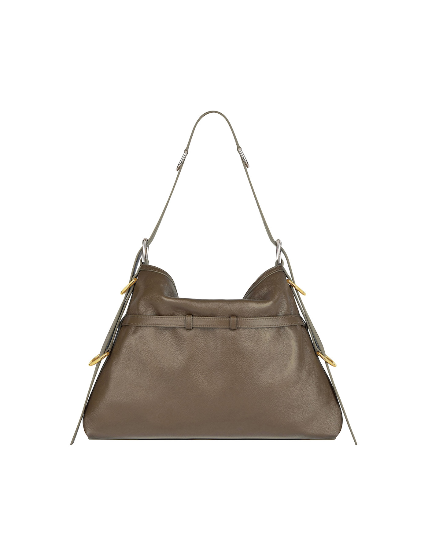 Cappuccino leather medium Voyou shoulder bag Width: 40 cm Height: 27 cm Depth: 6,5 cm Min shoulder strap length: 18 cm Max shoulder strap length: 44 cm