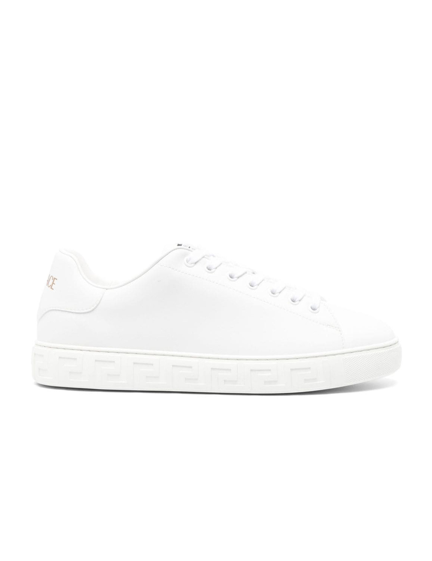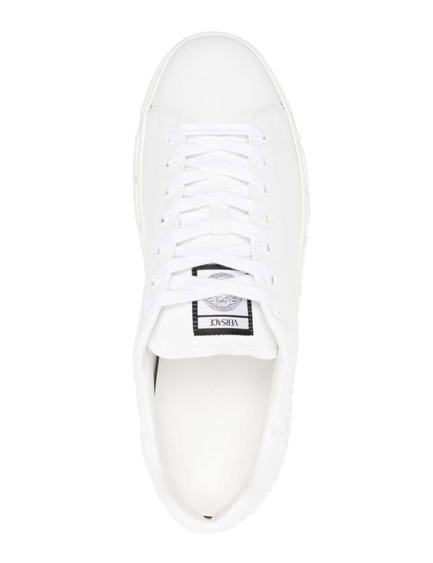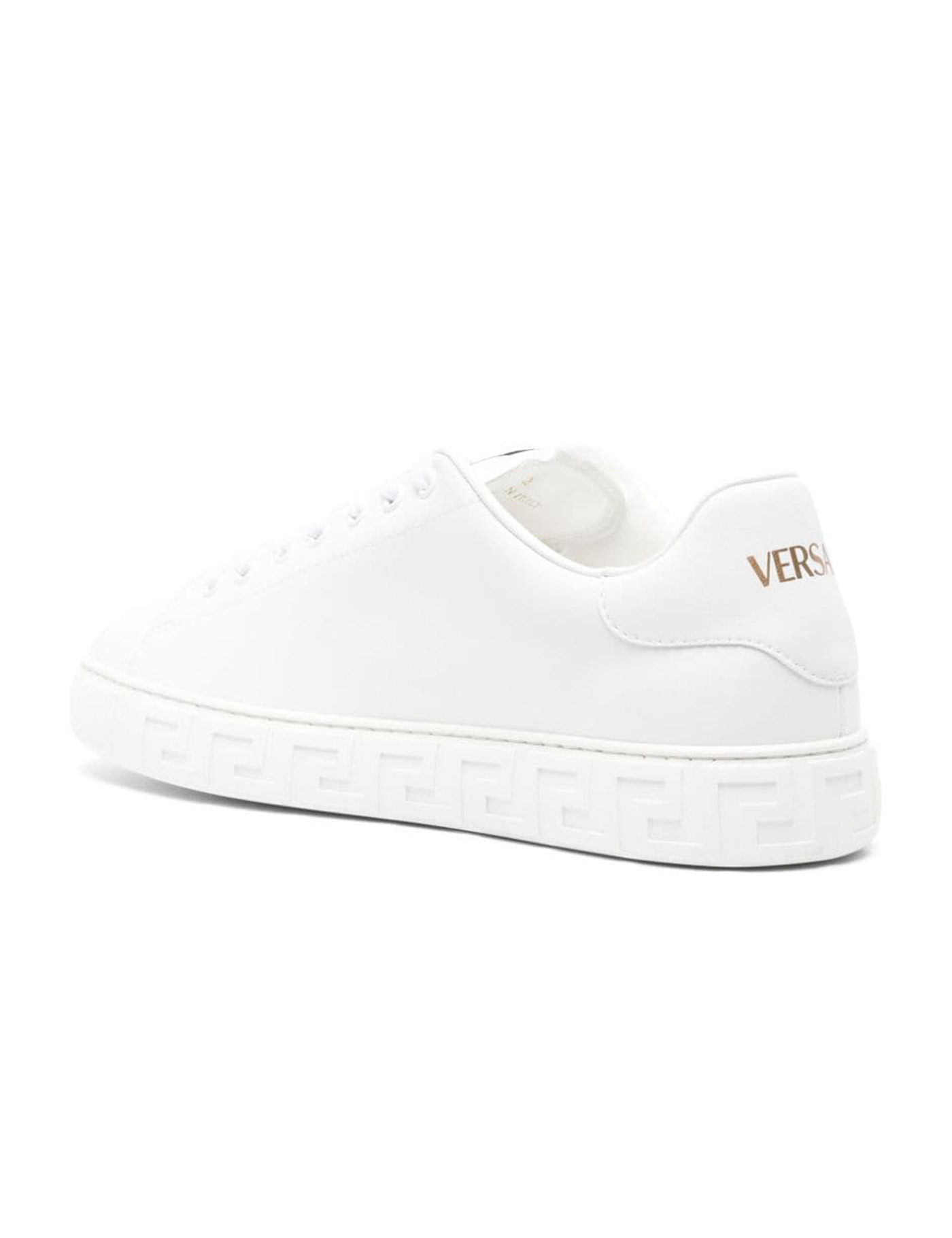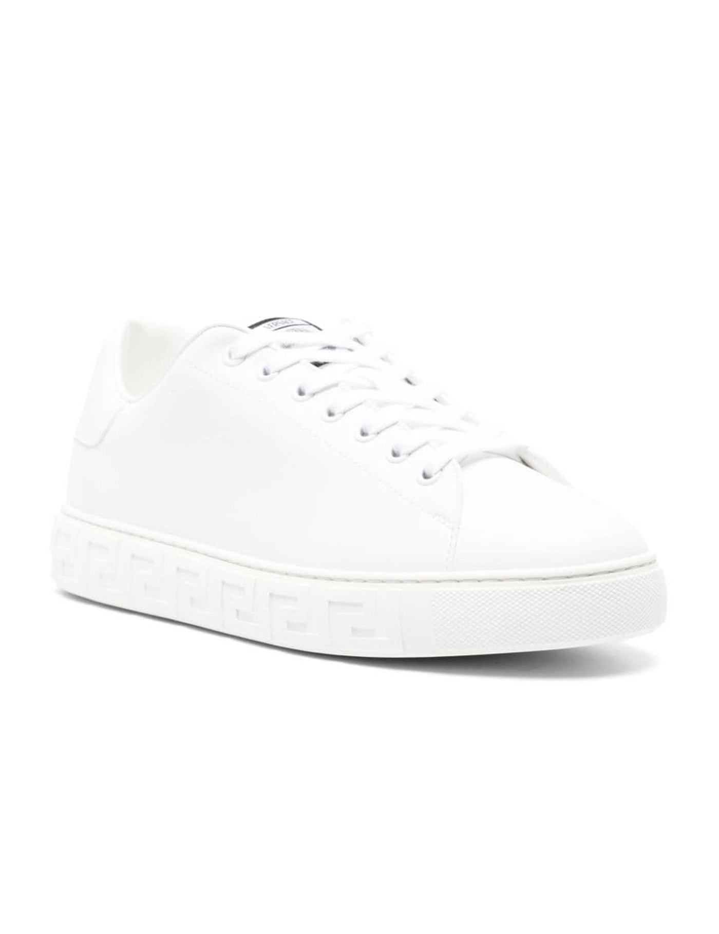 Optical white faux leather signature embossed greca detailing logo patch at the tongue branded heel counter tonal stitching round toe front lace-up fastening padded ankle branded insole flat rubber sole this piece comes complete with a protective dust bag. Dimension: heel: 3.5 centimetres, sole height: 3.0 centimetres