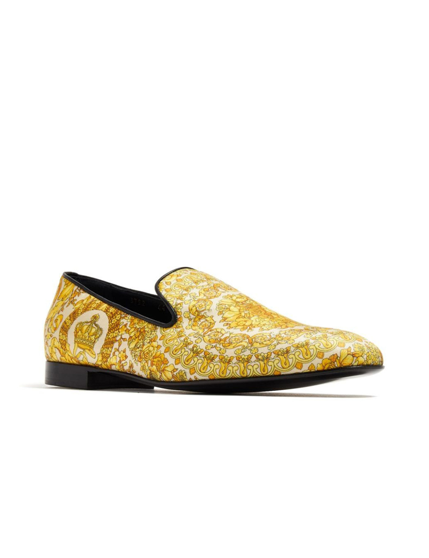 Gold-tone silk satin leather trim piped-trim detailing almond toe slip-on style low stacked heel leather sole