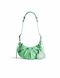 Le Cagole XS bag in light green Arena lambskin with silver-tone hardware. It features adjustable shoulder strap, zip closure and one main interior compartment. Detachable heart-shaped mirror.