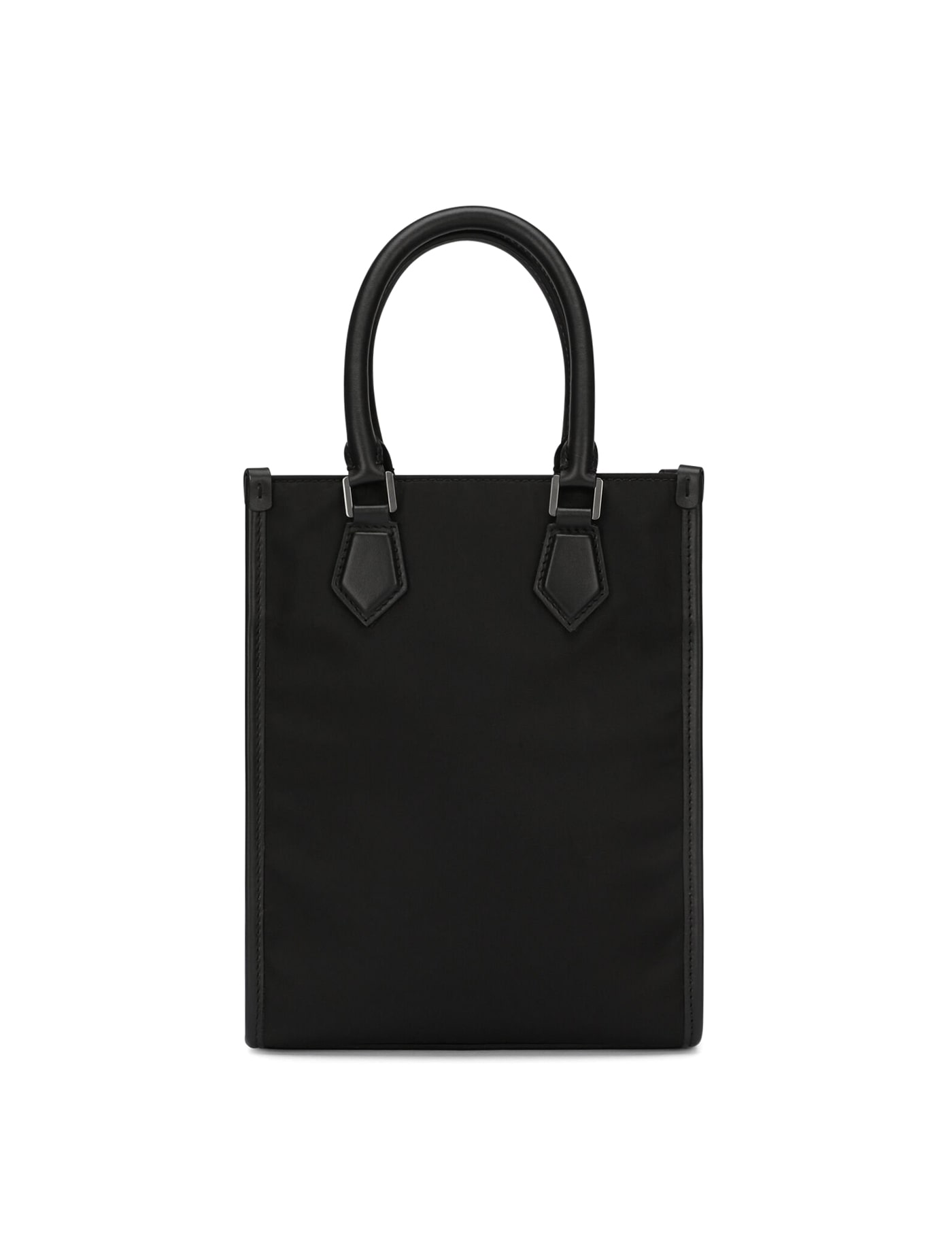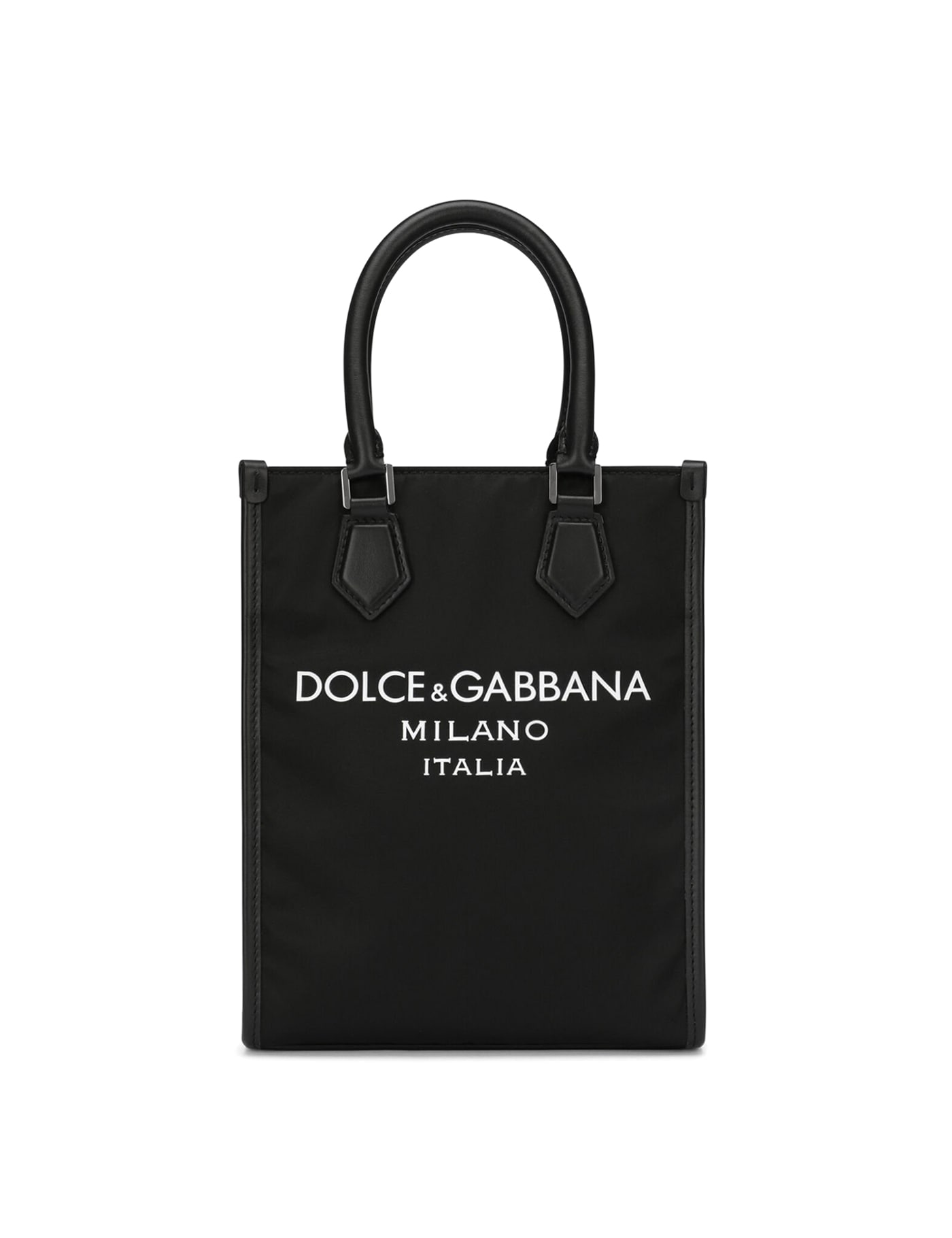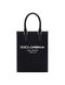 small raised logo tote bag from DOLCE & GABBANA featuring black, leather trim, raised logo detail, two top handles, adjustable detachable shoulder strap, magnetic fastening, main compartment and internal slip pocket. This piece comes complete with a protective dust bag..