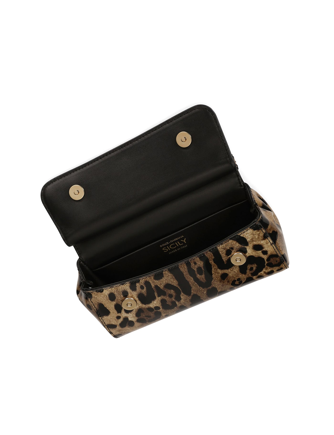 dark brown calf leather polished finish all-over leopard print pale gold-tone hardware logo plaque rolled top handle adjustable detachable shoulder strap foldover top with magnetic fastening main compartment internal slip pocket internal logo stamp calf leather lining This piece comes complete with a protective dust bag.