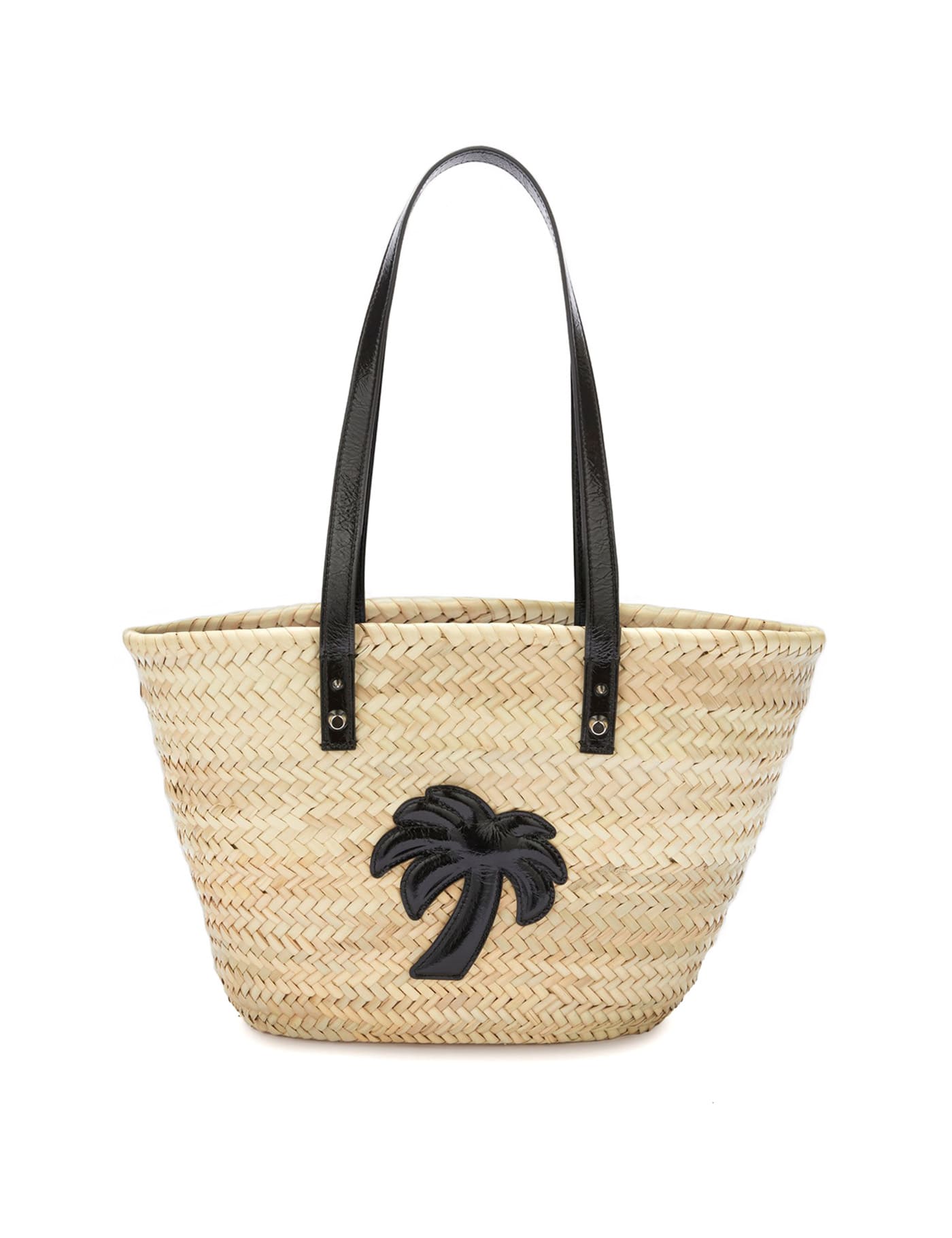 sand beige/black straw leather trim interwoven design embossed logo to the front silver-tone stud detailing bucket body two flat top handles open top main compartment DEPTH: 15.0 Centimetres HANDLE: 28.0 Centimetres HEIGHT: 30.0 Centimetres WIDTH: 30.0 Centimetres