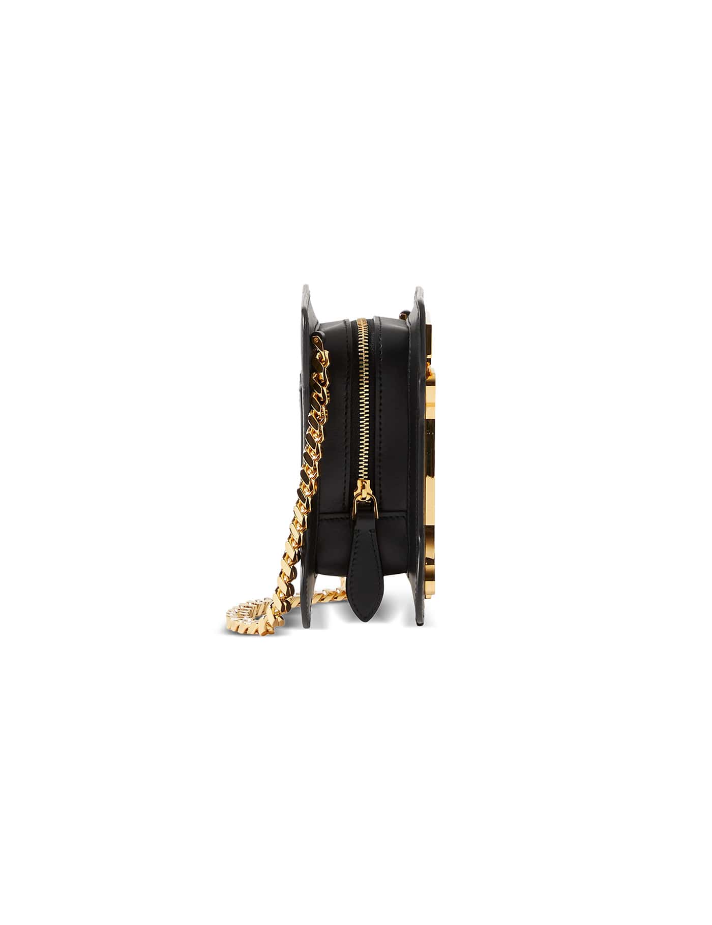 Mini crossbody bag made of Burberry leather featuring a gold-tone metal TB maxi monogram. Zippered closure and gold chain shoulder strap.