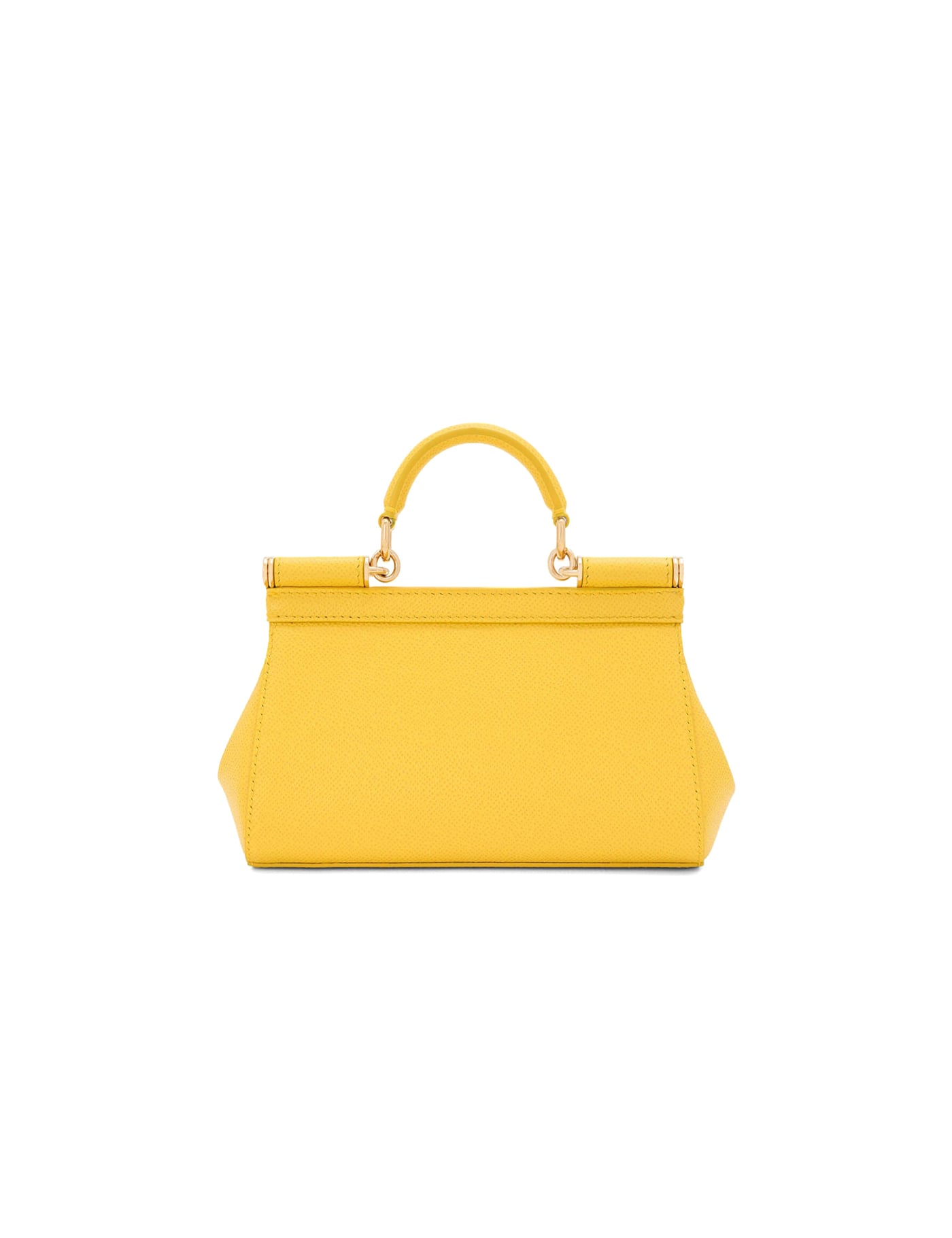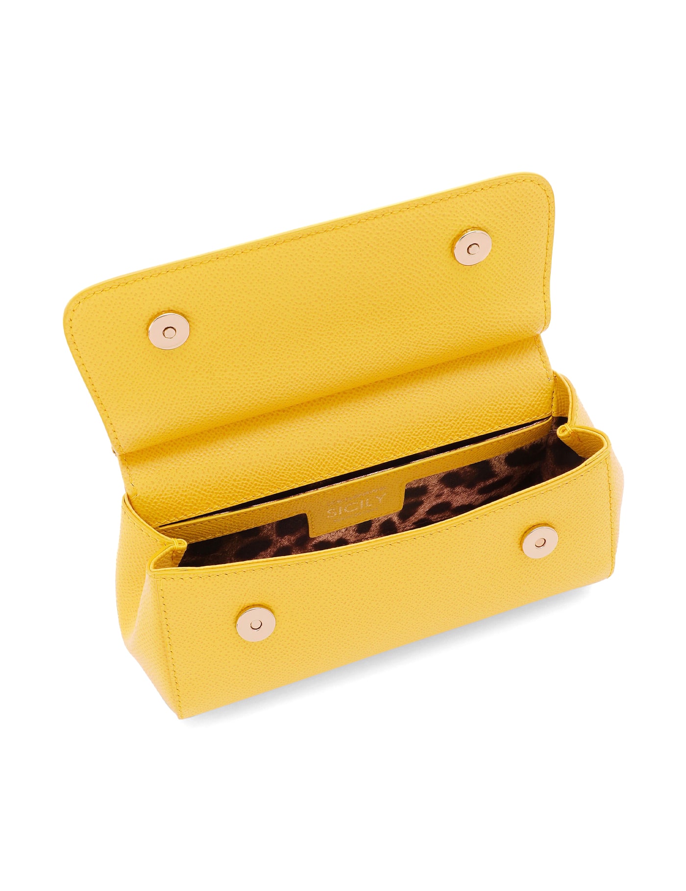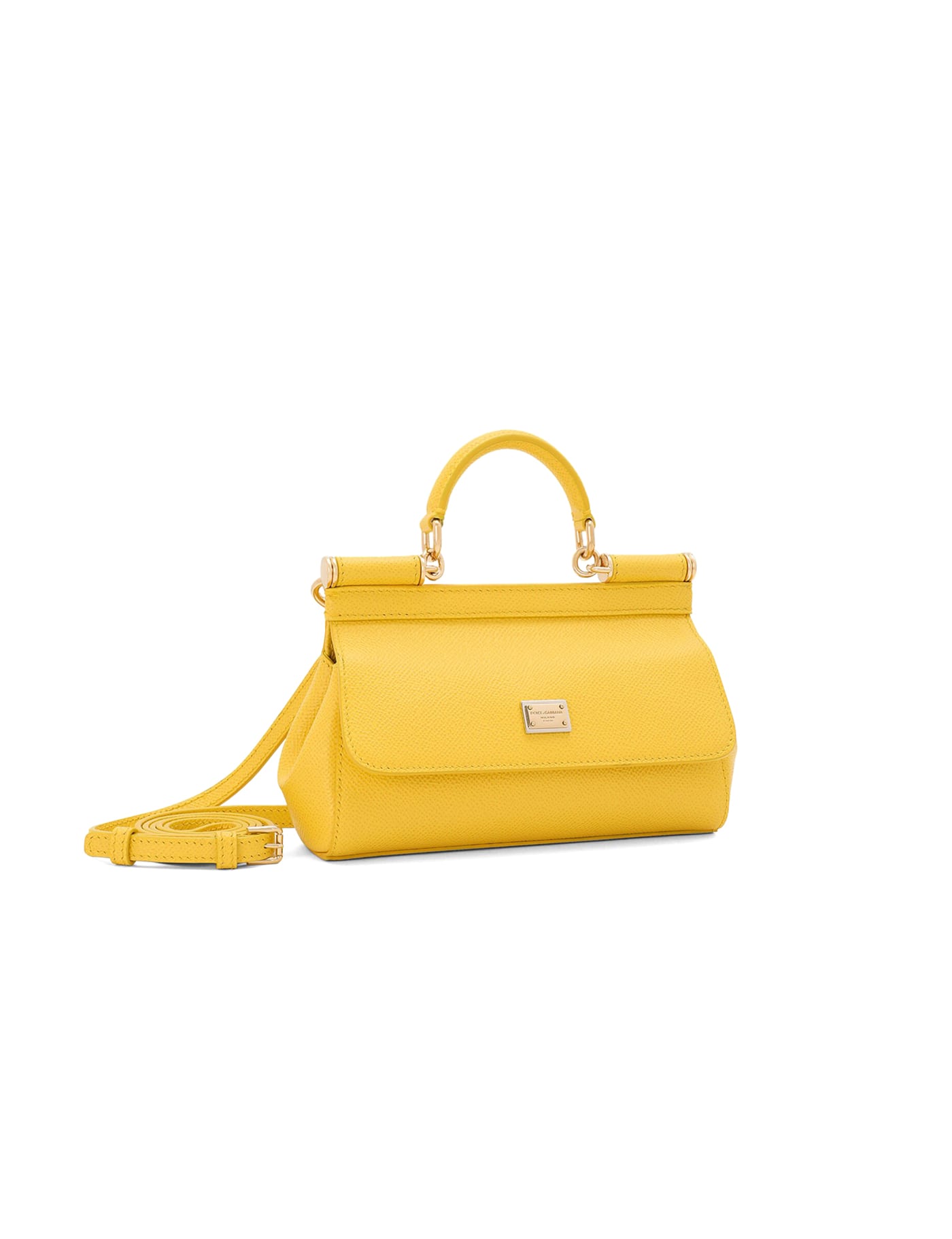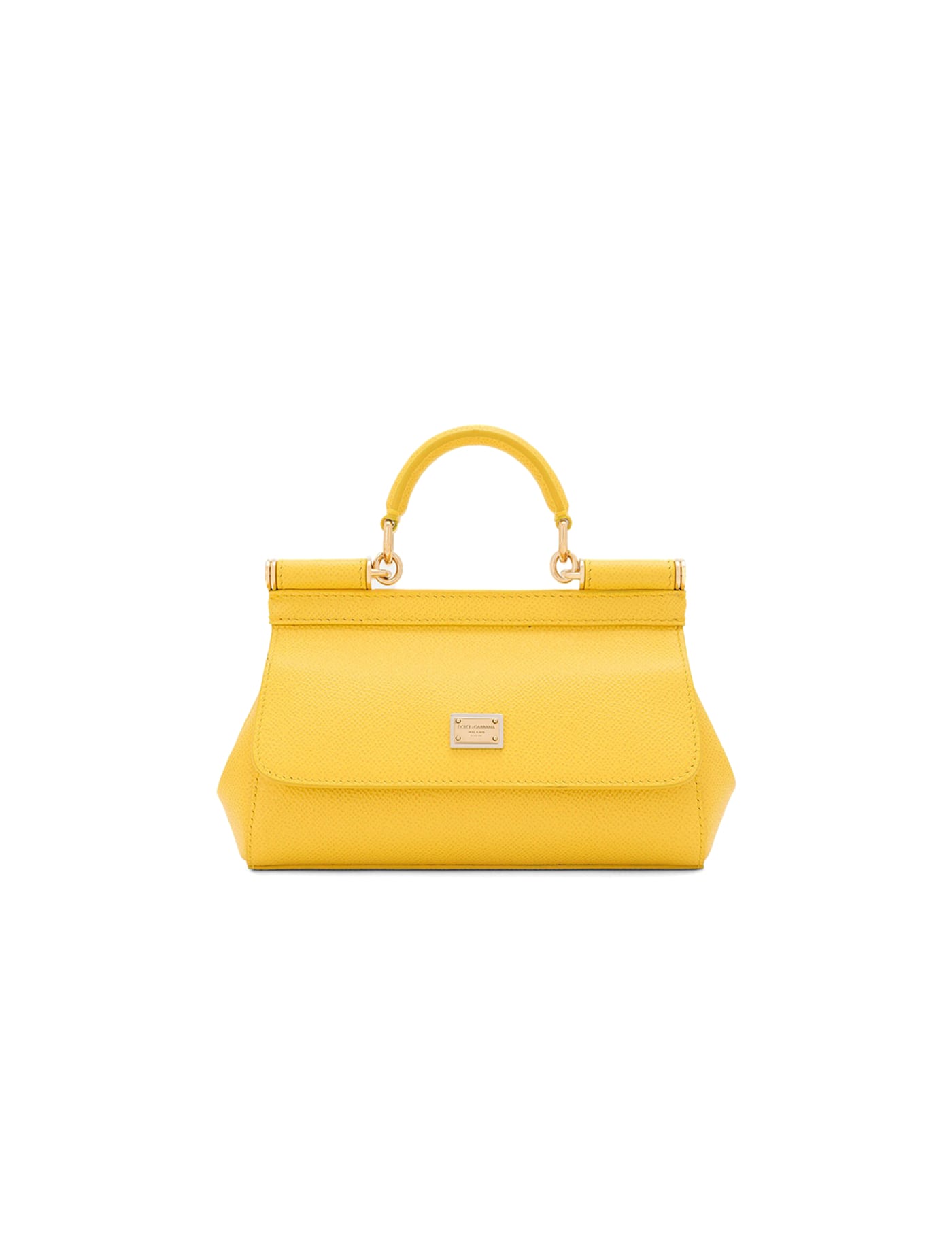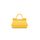 Mustard yellow, calfskin, gold-tone logo plaque, tubular handle, adjustable and removable shoulder strap, flap at the top with magnetic closure and single compartment.
