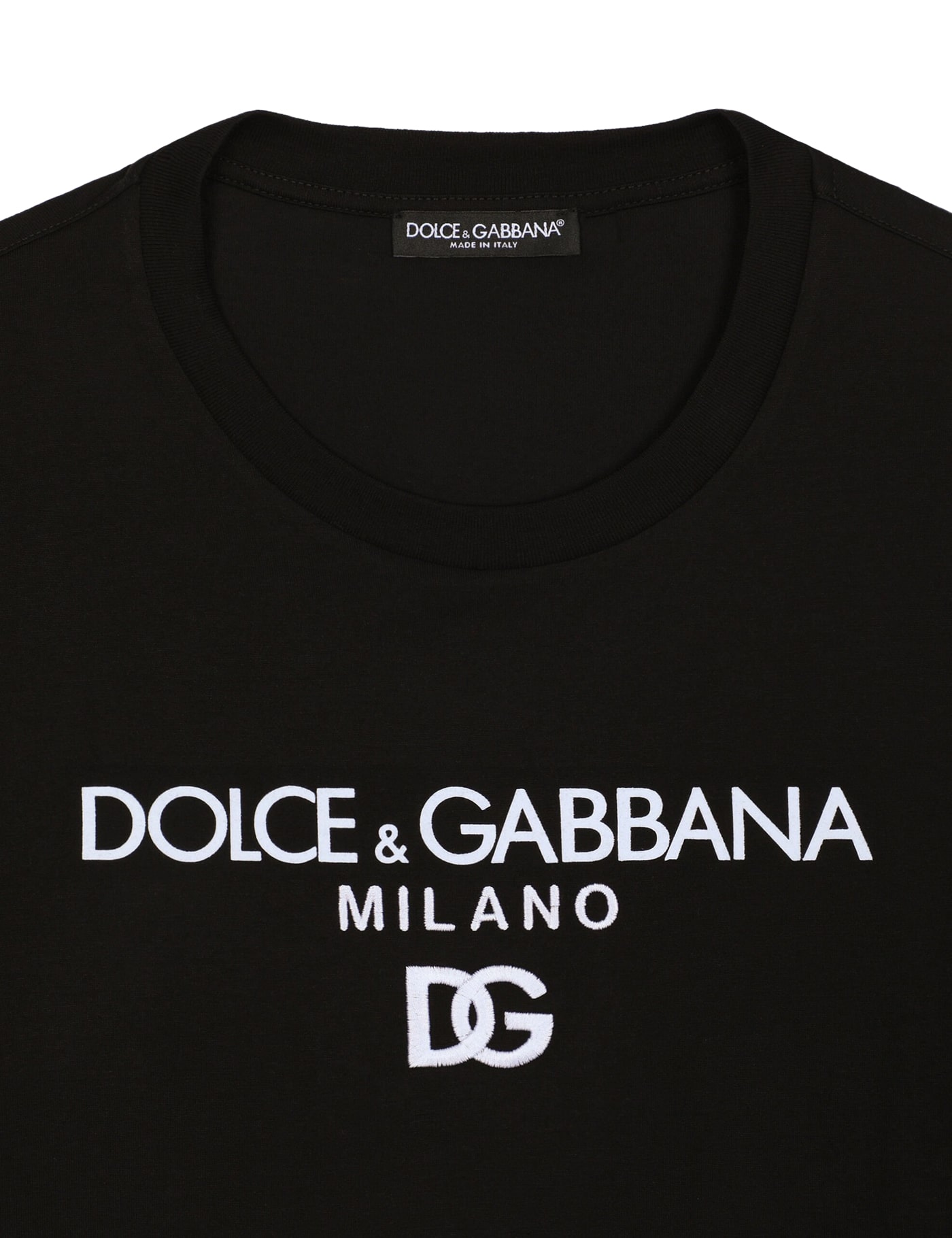 Black/white, cotton, front logo embroidery, crew neck, short sleeves and straight hem.