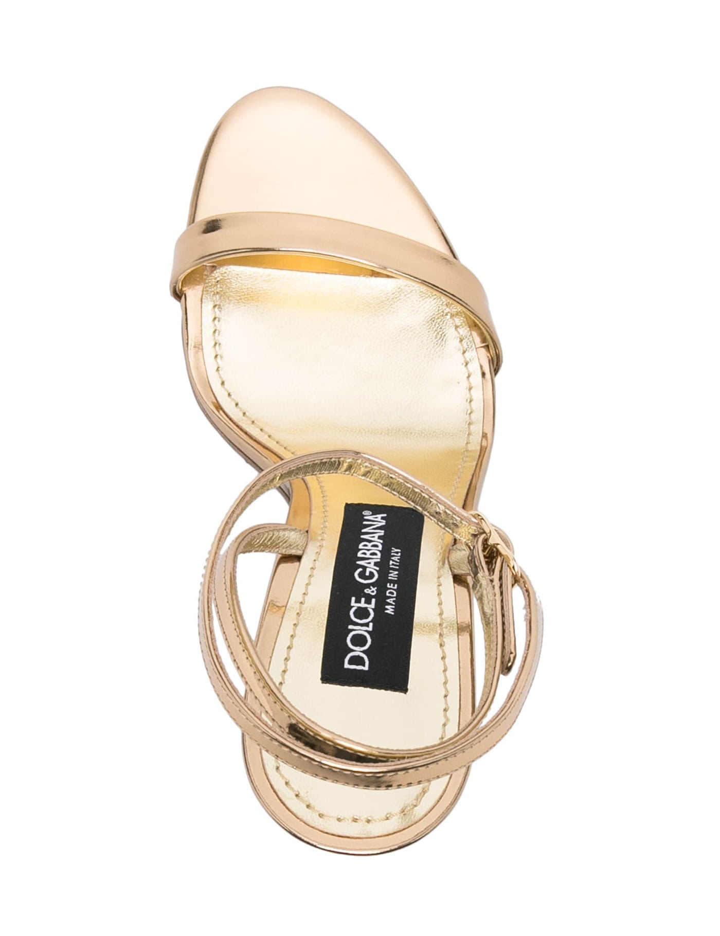 Mirror leather sandal Colour gold Adjustable ankle strap DG heel in gold-colored metal Leather sole Heel height 10.5cm