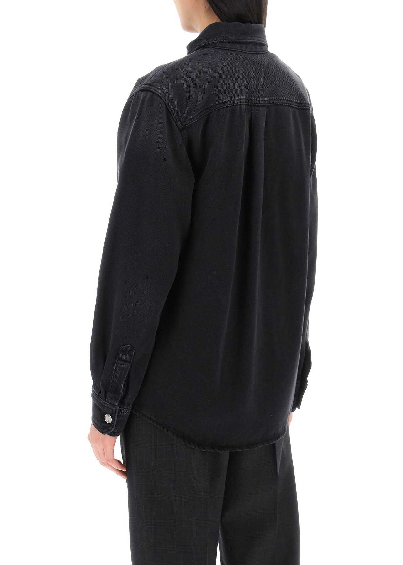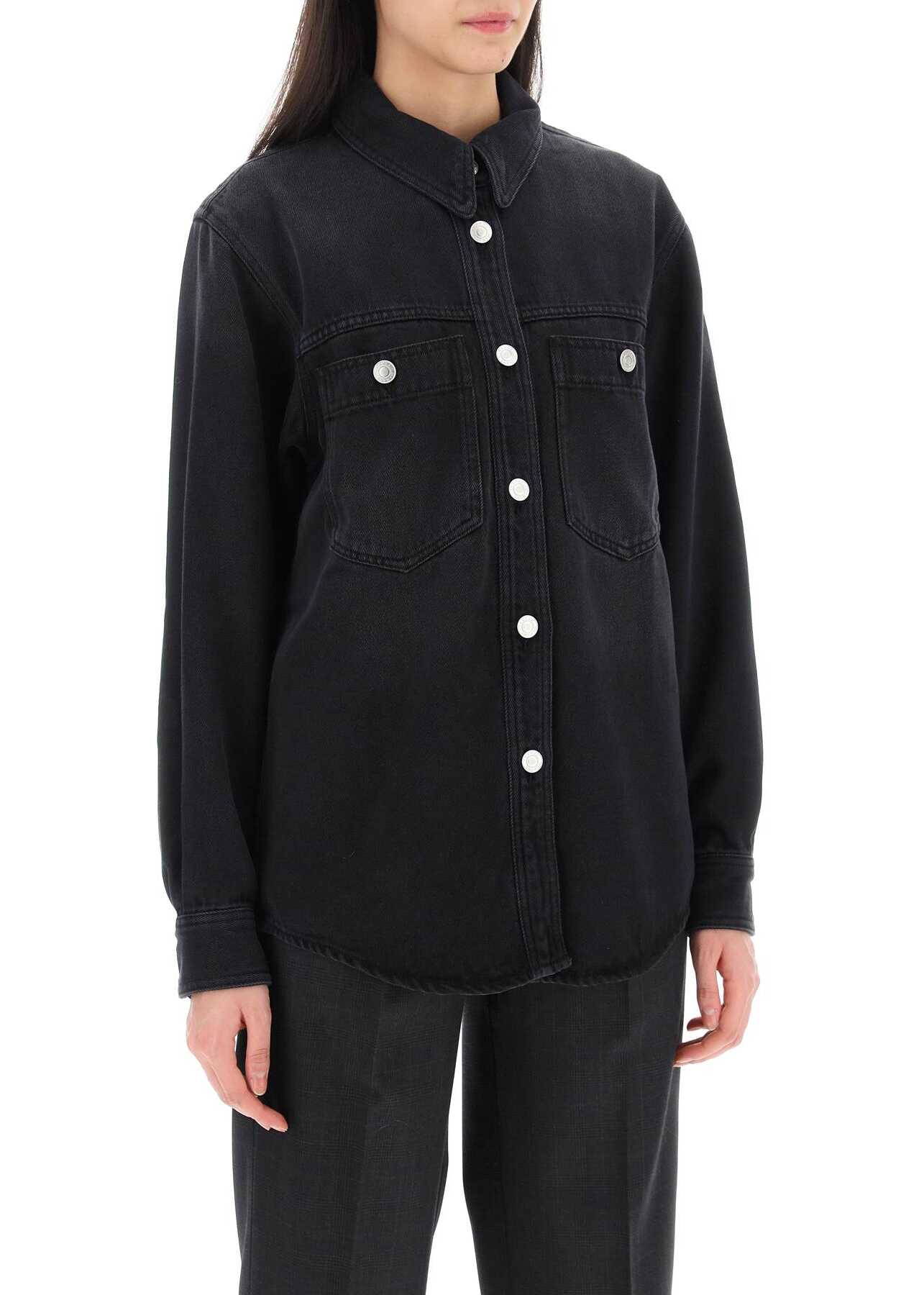 Talbot shirt by Isabel Marant cut from fluid cotton-blend denim to a relaxed fit, featuring a classic collar and branded buttoning. Two patch pockets at chest, single-button beveled cuffs, back yoke with box pleat and rounded hem. The model is 177 cm tall and wears a size FR 34.