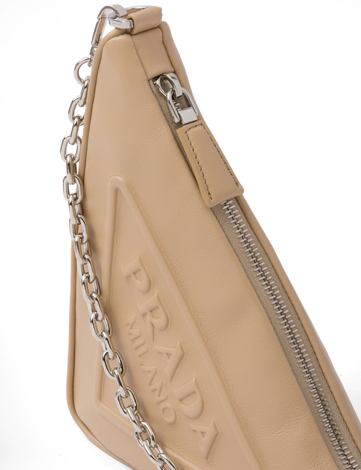 Sand leather Prada Triangle shoulder bag Width: 26 cm Height: 15,5 cm Depth: 6,5 cm Handle height 1: 26 cm Handle height 2: 22 cm