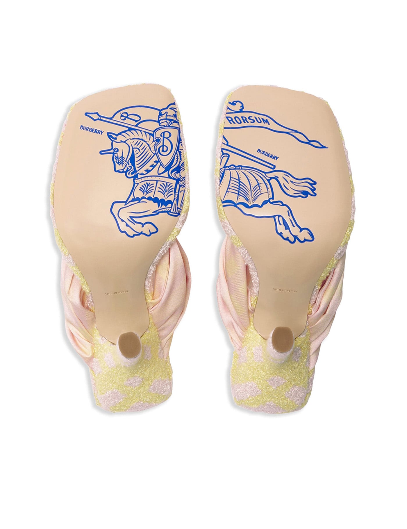 light pink/yellow leather shearling lining check print open toe branded insole logo at the sole 105mm high heel