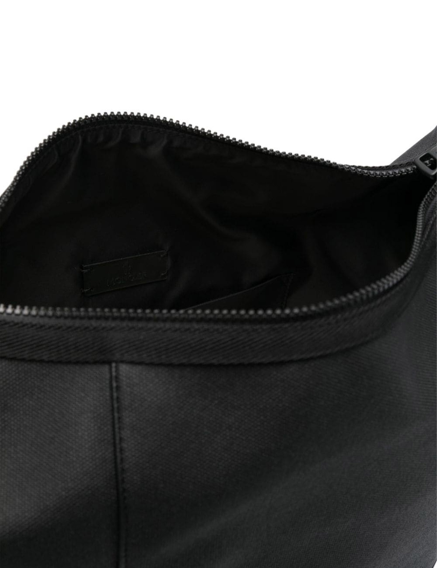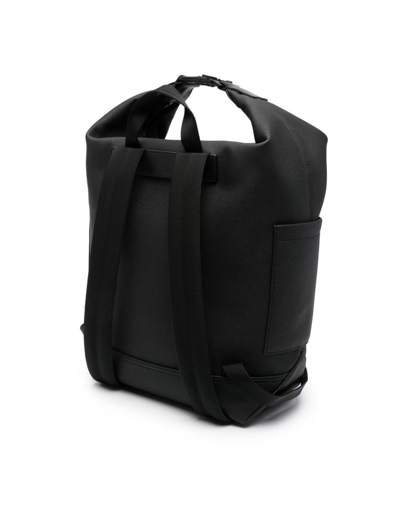 Nakoa backpack by Moncler made of coated canvas with leather logo patch applied to front pocket. Zipper and magnetic buckle closure, lined interior with one open pocket, additional front pockets and adjustable shoulder straps.