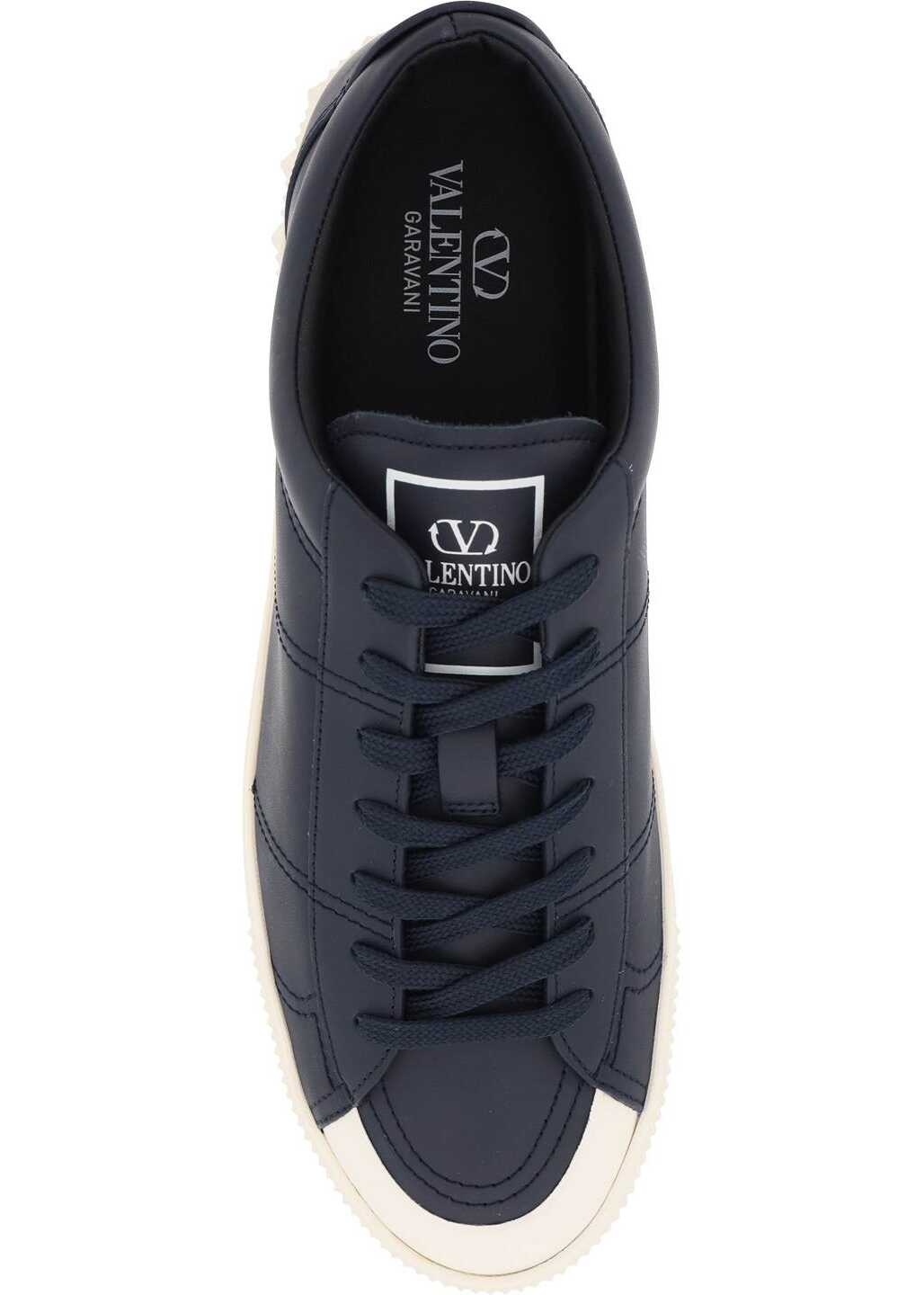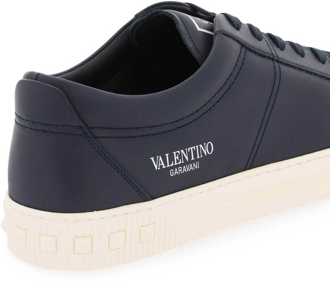 Cityplanet sneakers by Valentino Garavani in soft calf leather with visible stitching, rubber toe cap and gold-tone logo print on the tongue and on the side. Lace-up closure, leather lining, removable leather insole, rubber sole with embossed studs on the back. Spare laces included.
