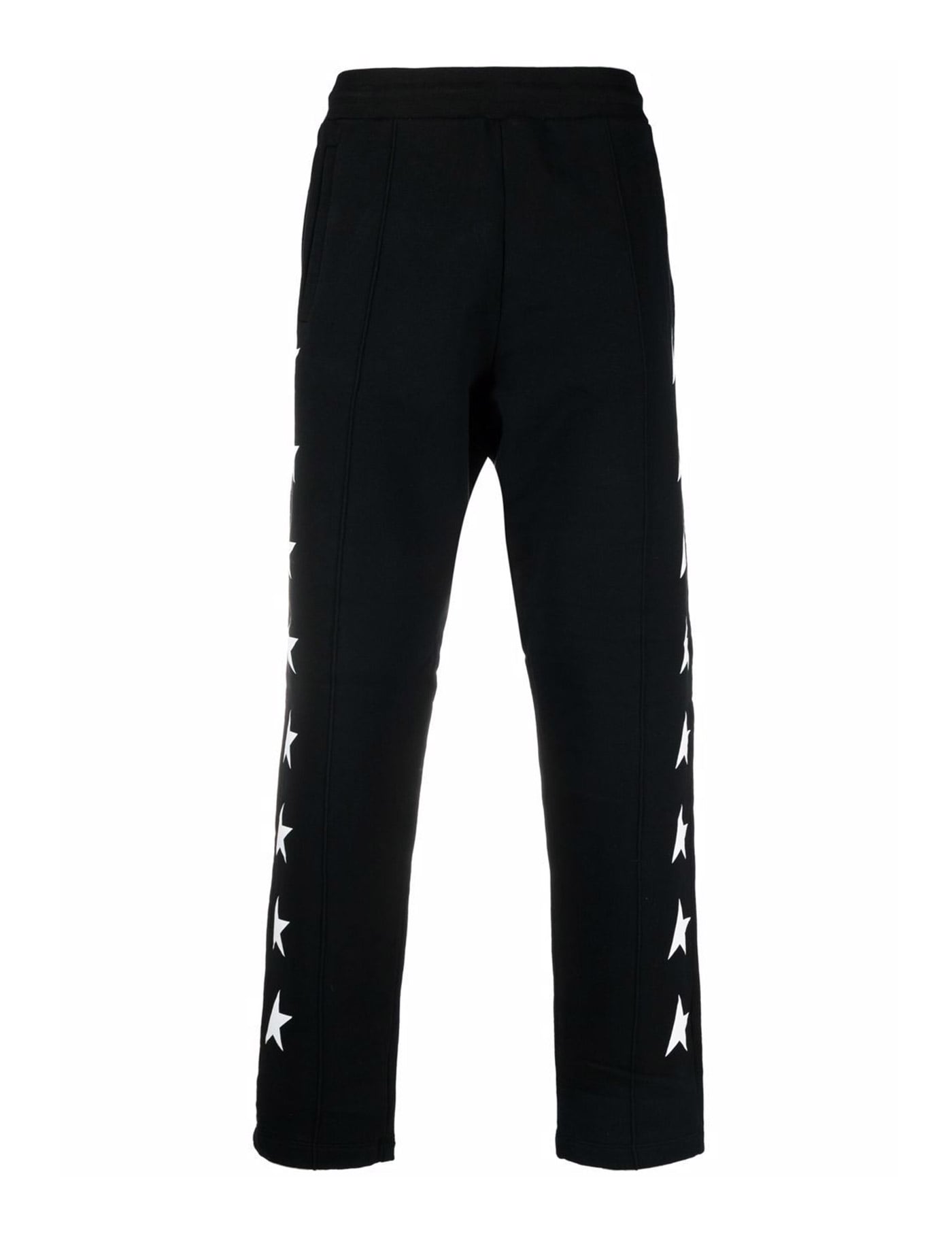 Black cotton Star-motif track pants from Golden Goose featuring star print, elasticated waistband, two side slit pockets, rear patch pocket and straight leg.