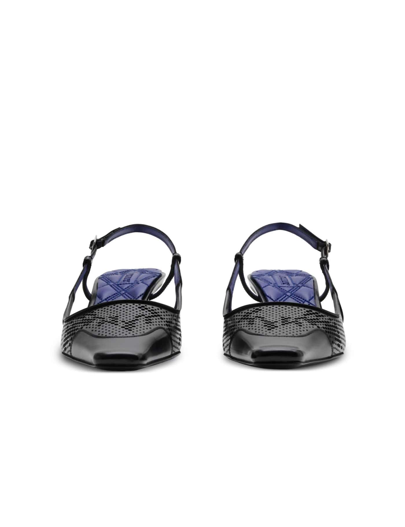 Black calf leather perforated detailing square toe buckle-fastening slingback strap branded footbed 50mm mid heel leather sole