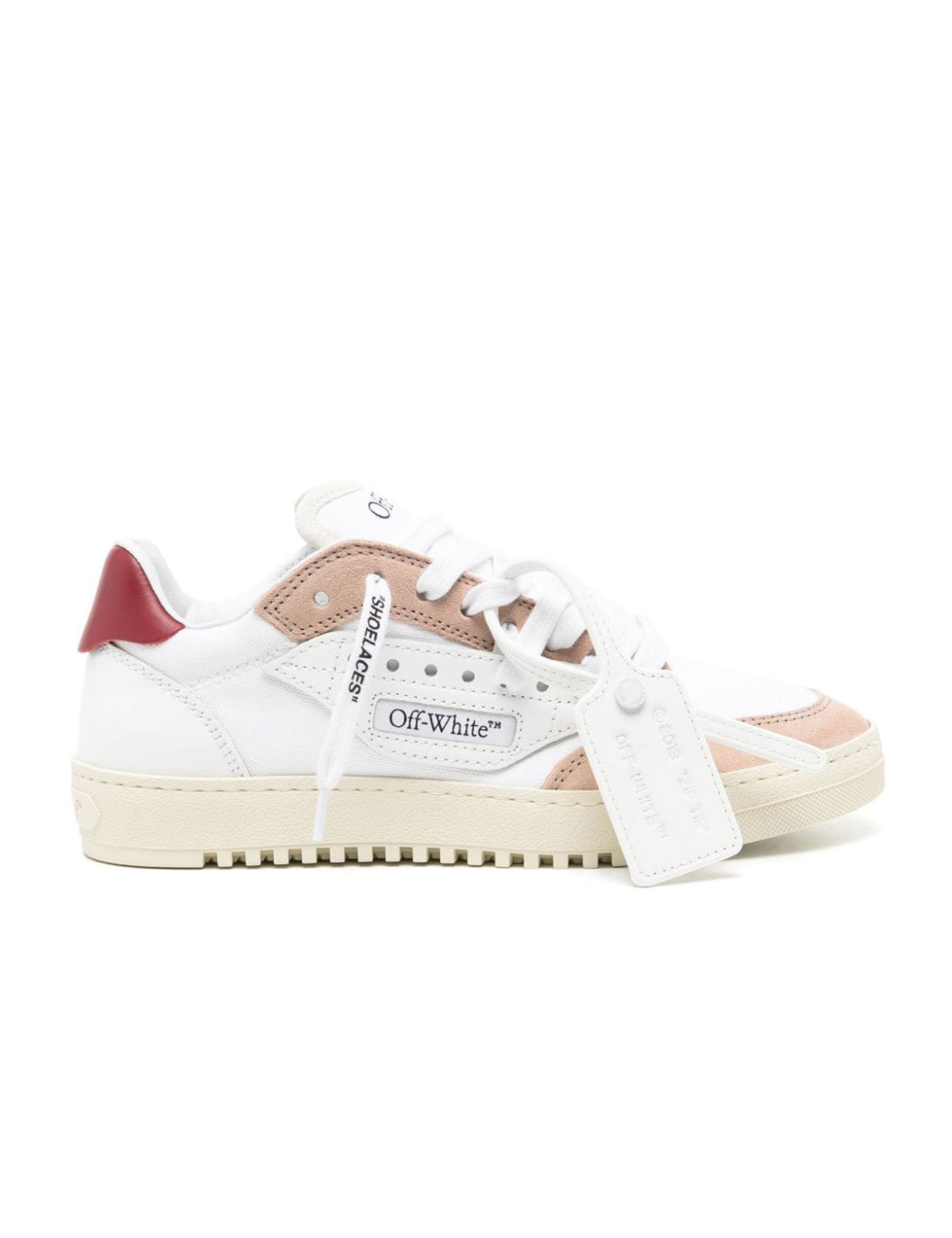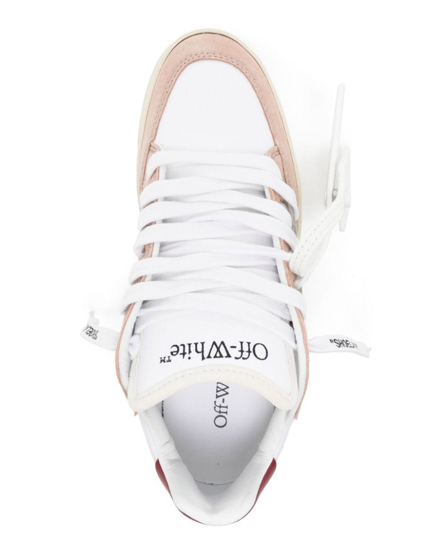 White cotton sneaker. Suede leather inserts. Lace-up closure. Contrasting heel. Logo on tongue on back and top. Leather Zip-Tie label on front.