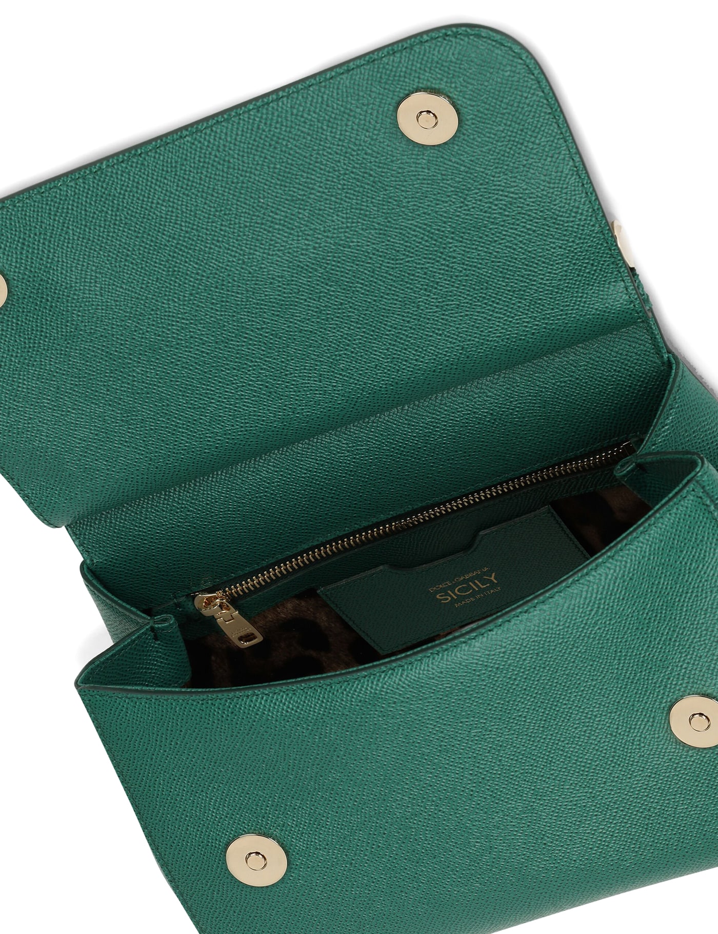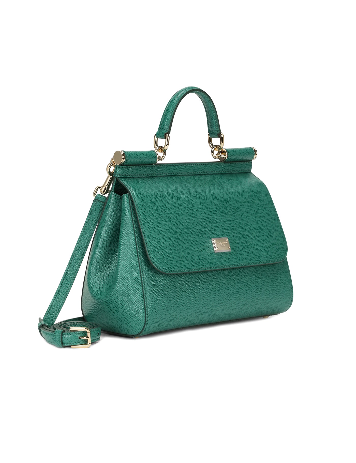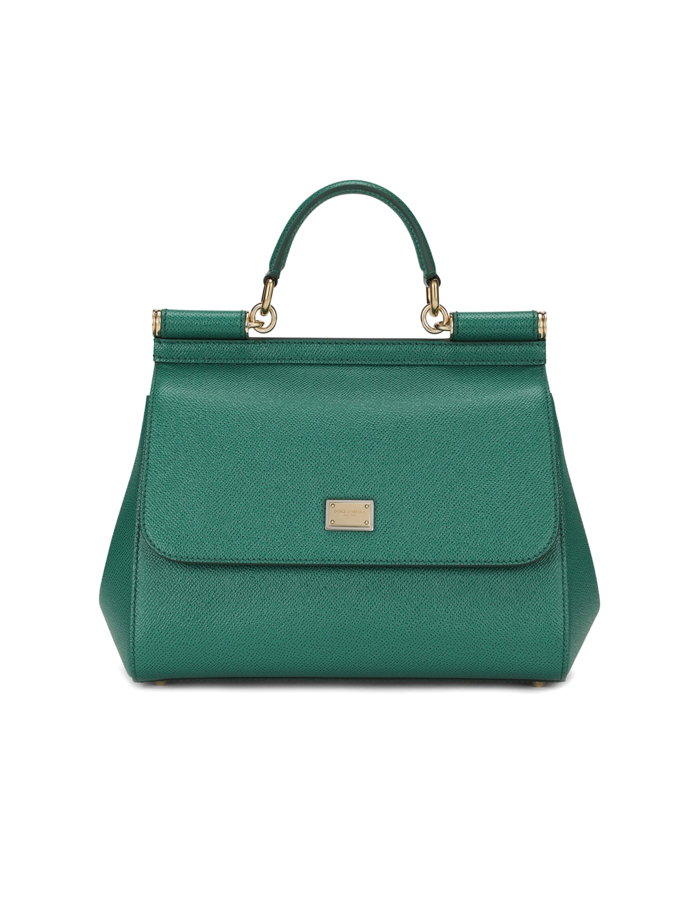 'Sicily' large handbag in Dauphine leather with magnetic closure, front logo tag, fixed handle, adjustable and removable shoulder strap